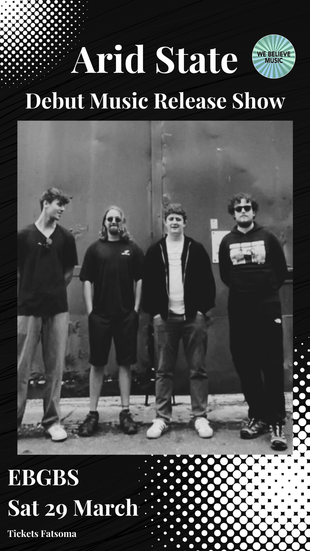 Arid State - 4 young musicians from Liverpool share their new music at their debut music release show at the iconic EBGBS in the city. Expect a high energy live performance of their fantastic indie rock music!!