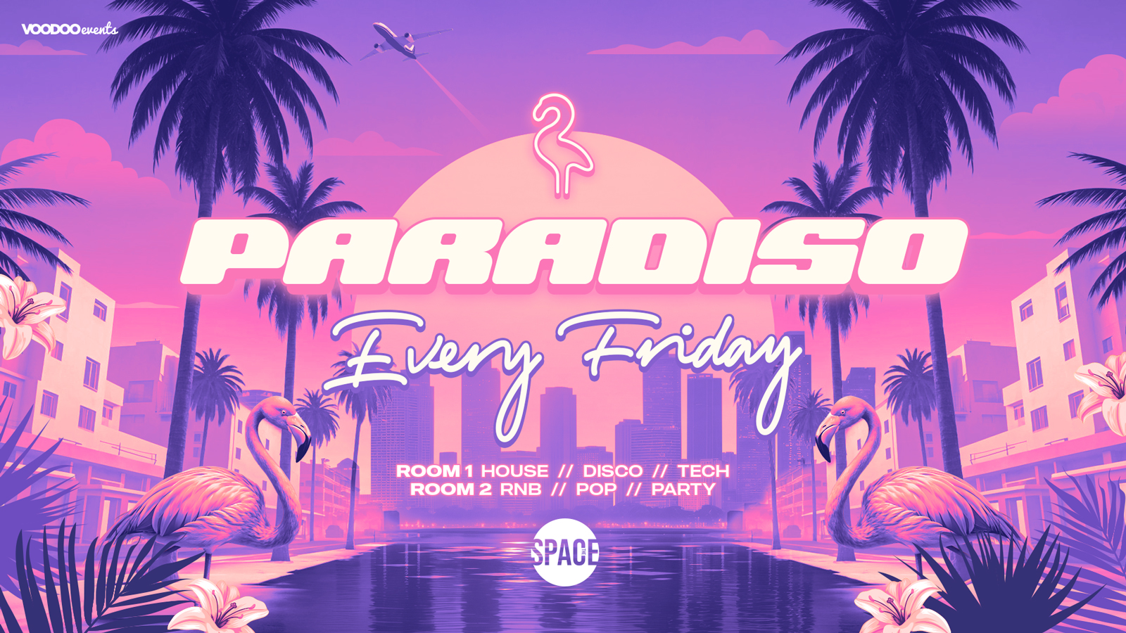 Step into a paradise of palm trees and electric energy. Whether you're chilling with your crew or dancing all night, Paradiso is your perfect escape from the ordinary.