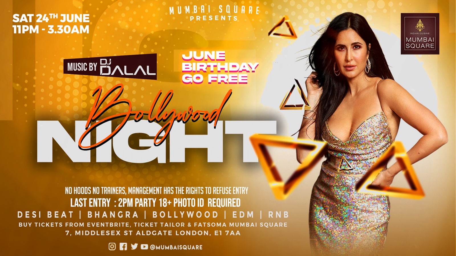 Free entry for June born guests. Must contact Mumbai Square team in advance for complimentary ticket. Limited number available! Offer not available on the event day. info@mumbaisquare.co.uk