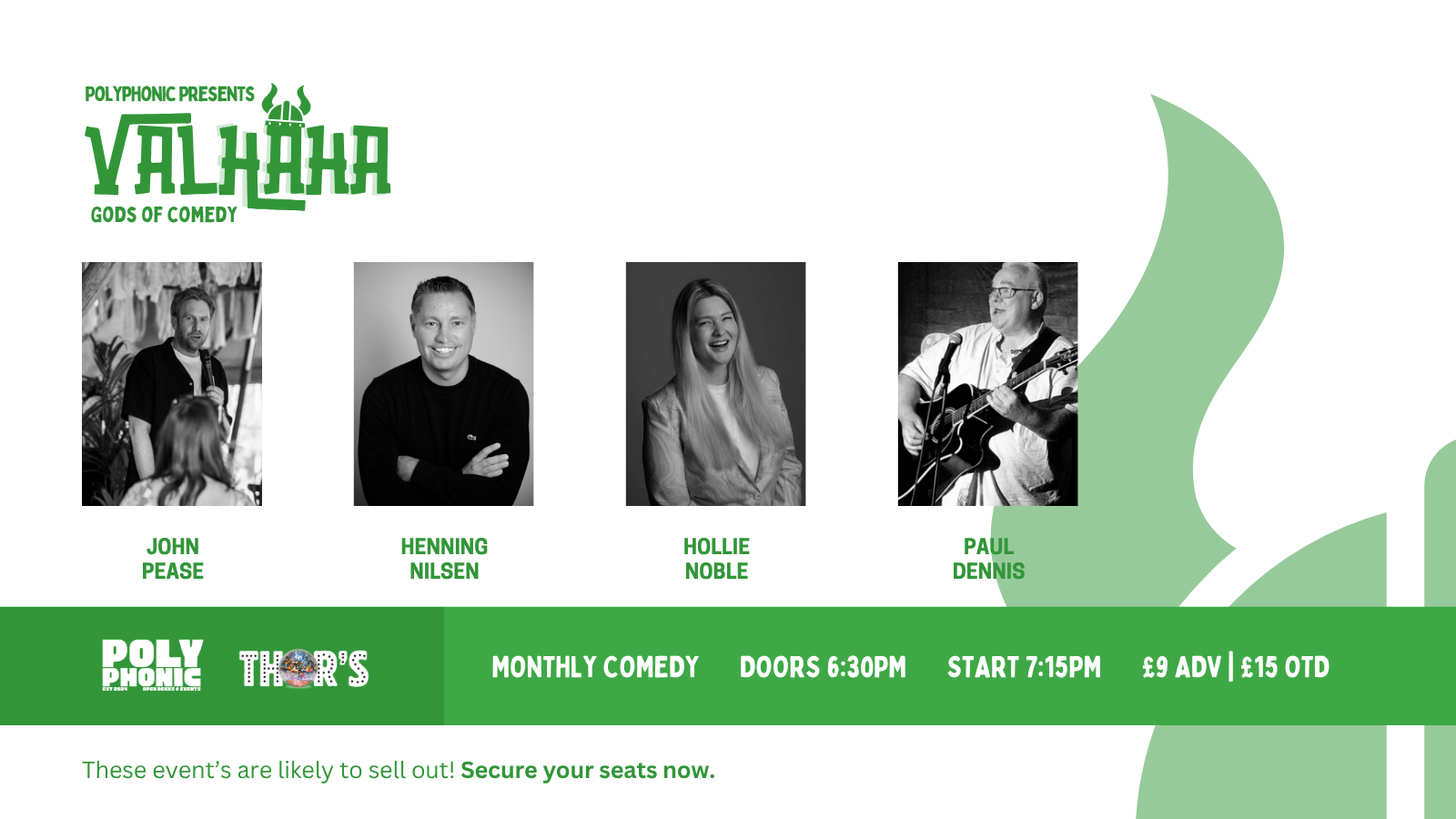 A mythical mashup of “Valhalla” and “haha” - expect heroic laughter, bold comedy, and an unforgettable night out.