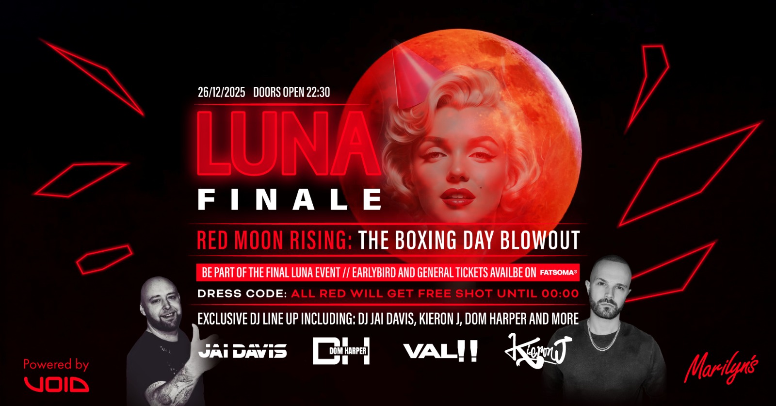 🌕🔥 Get ready for the LUNA FINALE at Marilyn’s Nightclub in Evesham — the biggest Boxing Day celebration of the year! 🔥🌕