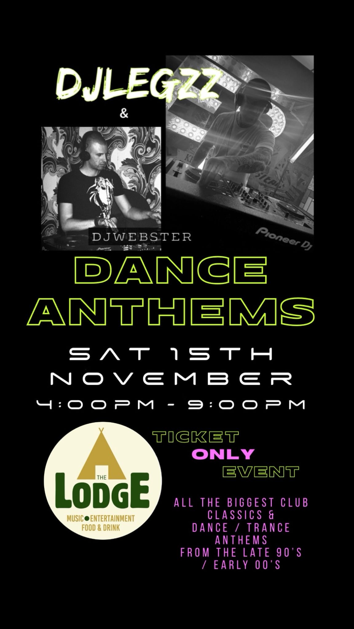 The Barn will open at 4:00pm - 9:00pm where we’ll bring you all the biggest dance /Trance & club classics from the late 90’s through to the early 00’s. And still be in bed by 10:00pm.