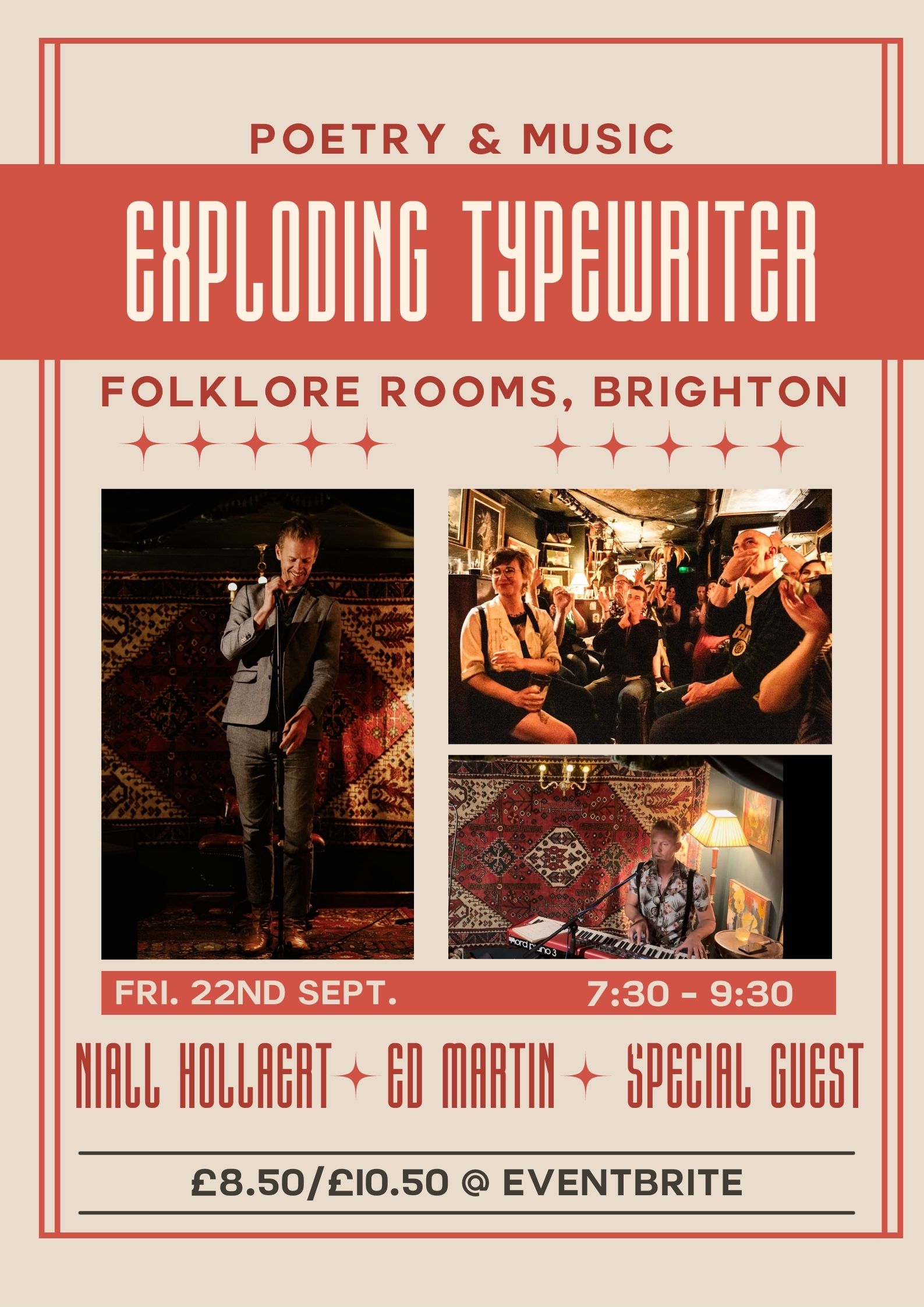 After two incredible sold out shows at The Black dove, The Exploding Typewriter is moving to the wonderful Folklore Rooms. A beautiful , intimate club but with a substantially larger capacity and a history of hosting fantastic events.