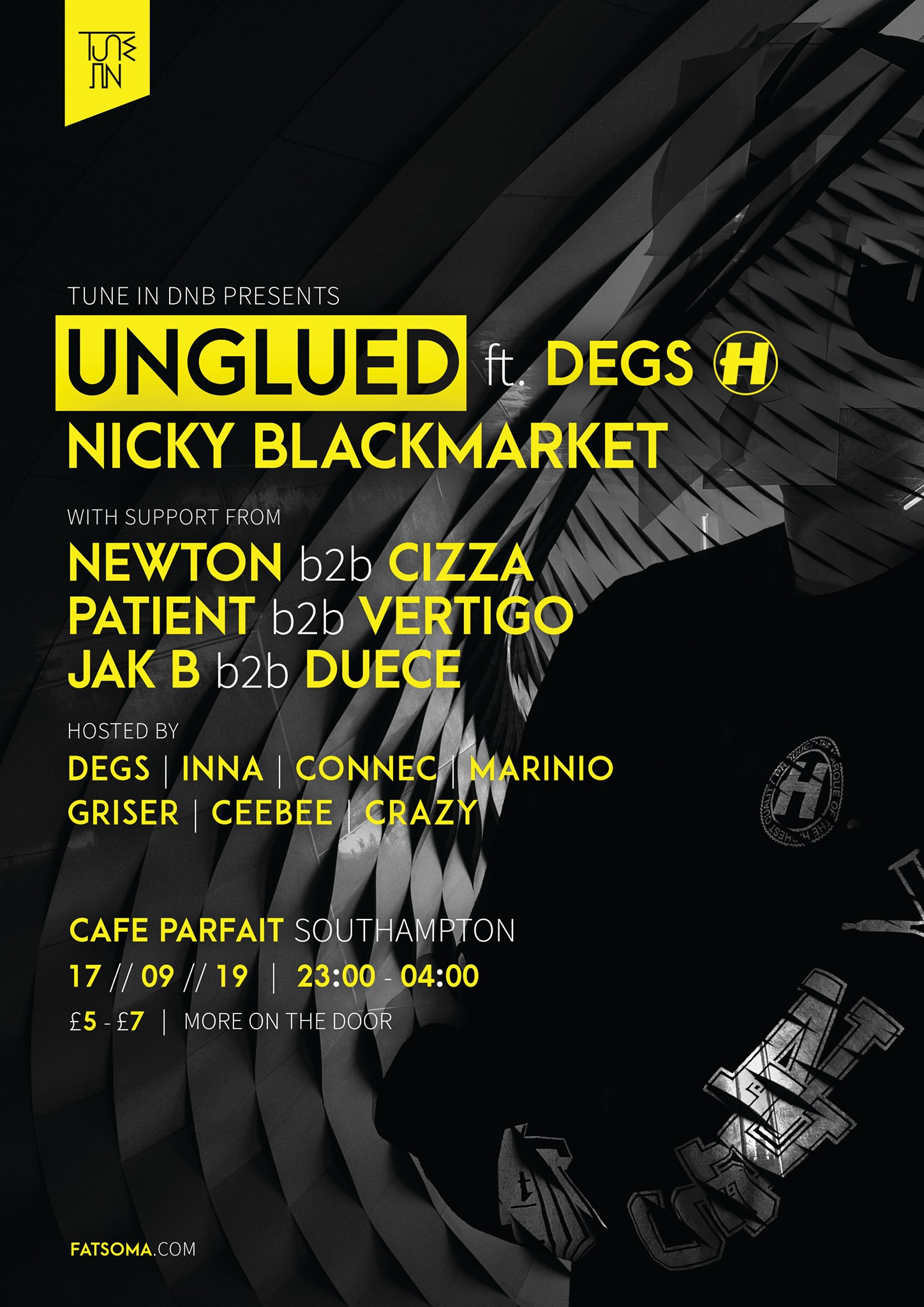Tune In DnB is bringing Unglued, Degs, Nicky Blackmarket and many others to Cafe Parfait