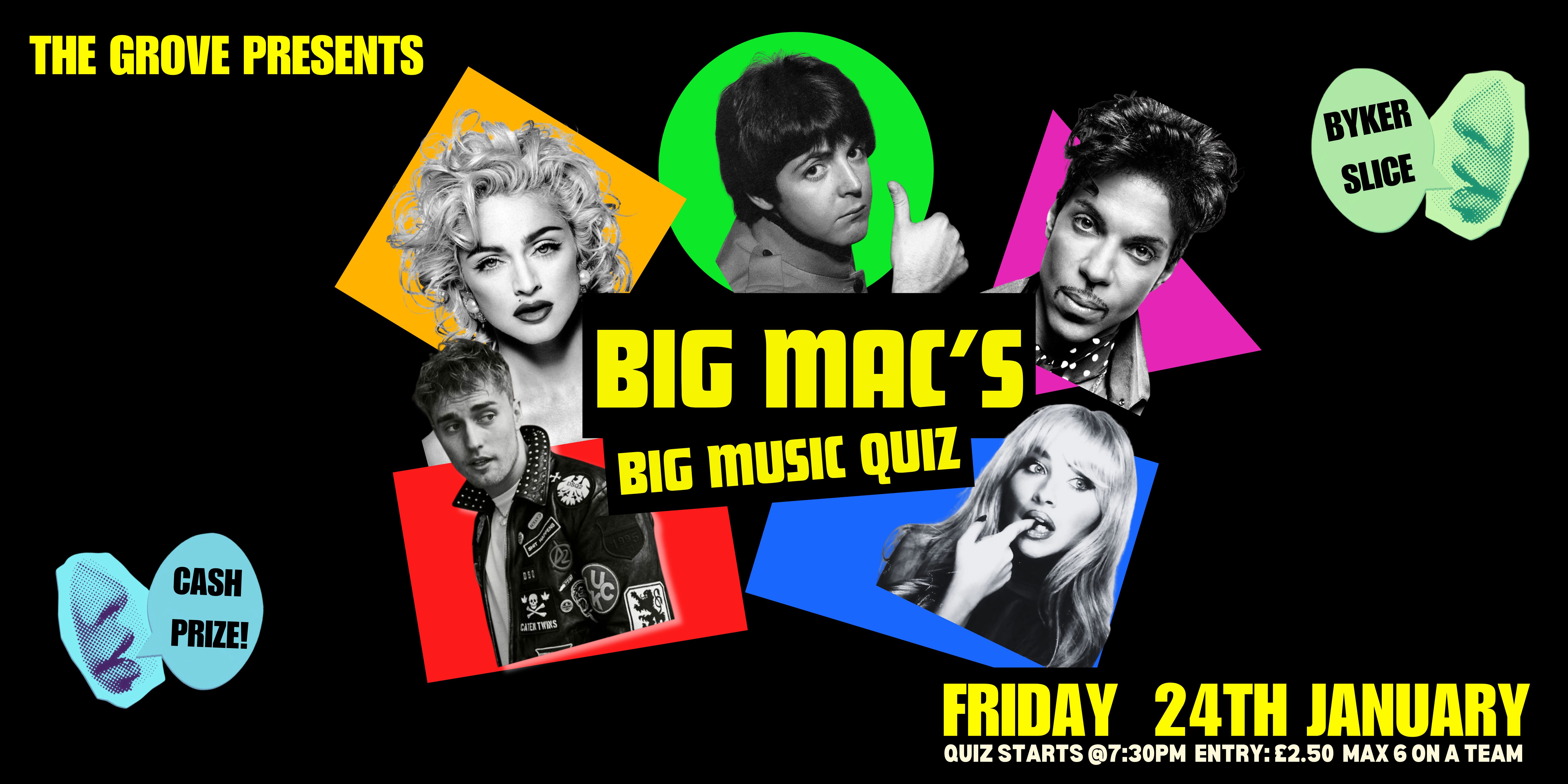 We’re kicking off 2024 with a bang! Join BIG MAC for a fun, laugh-out-loud kinda night. Jam packed with music trivia, laughs, and maybe a bit of healthy competition. Expect a mix of rounds to keep you on your toes, like: