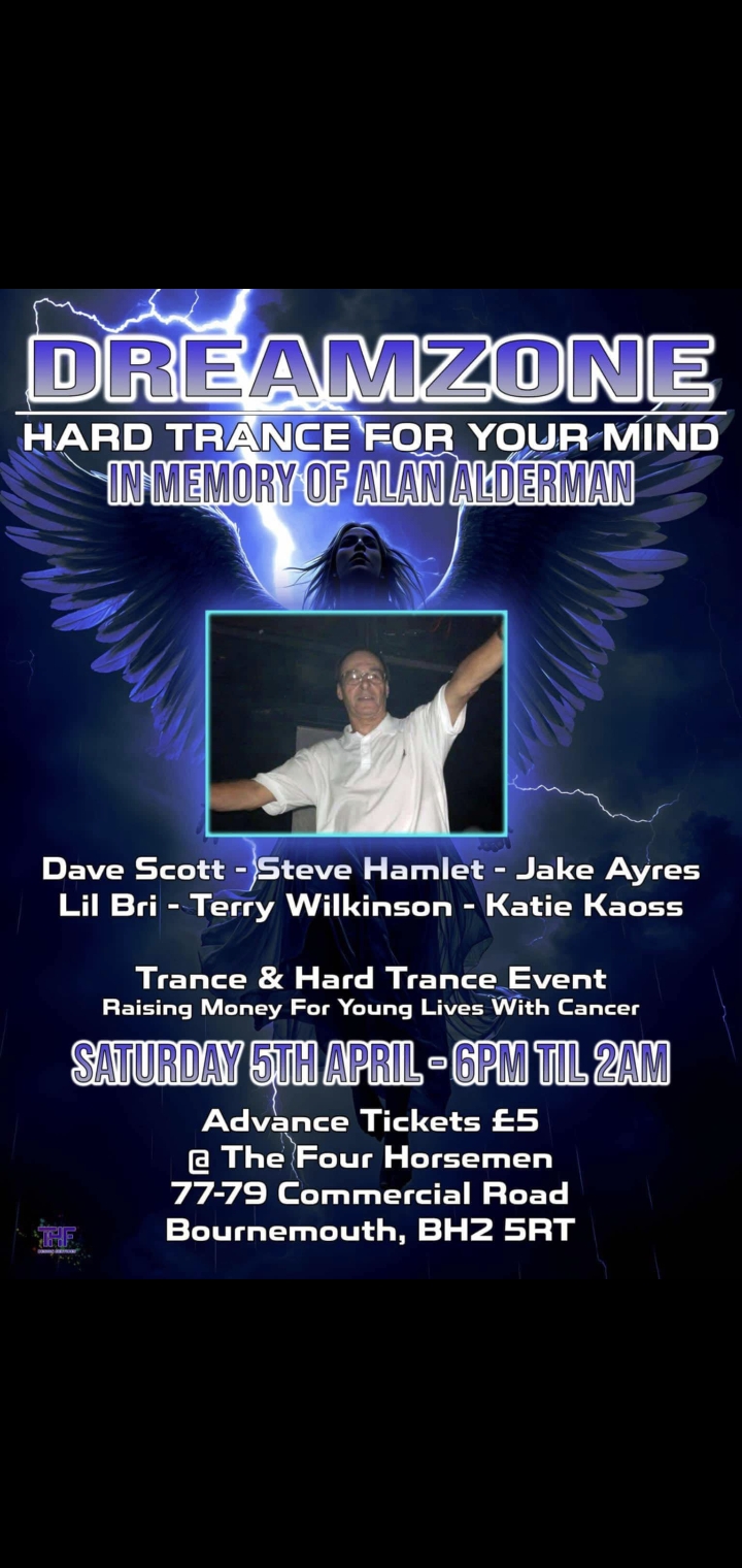 DREAMZONE is bringing the hardest trance to The Four Horsemen in memory of Alan Alderman. 🎶 Let’s rave, remember, and raise money for young lives fighting cancer.