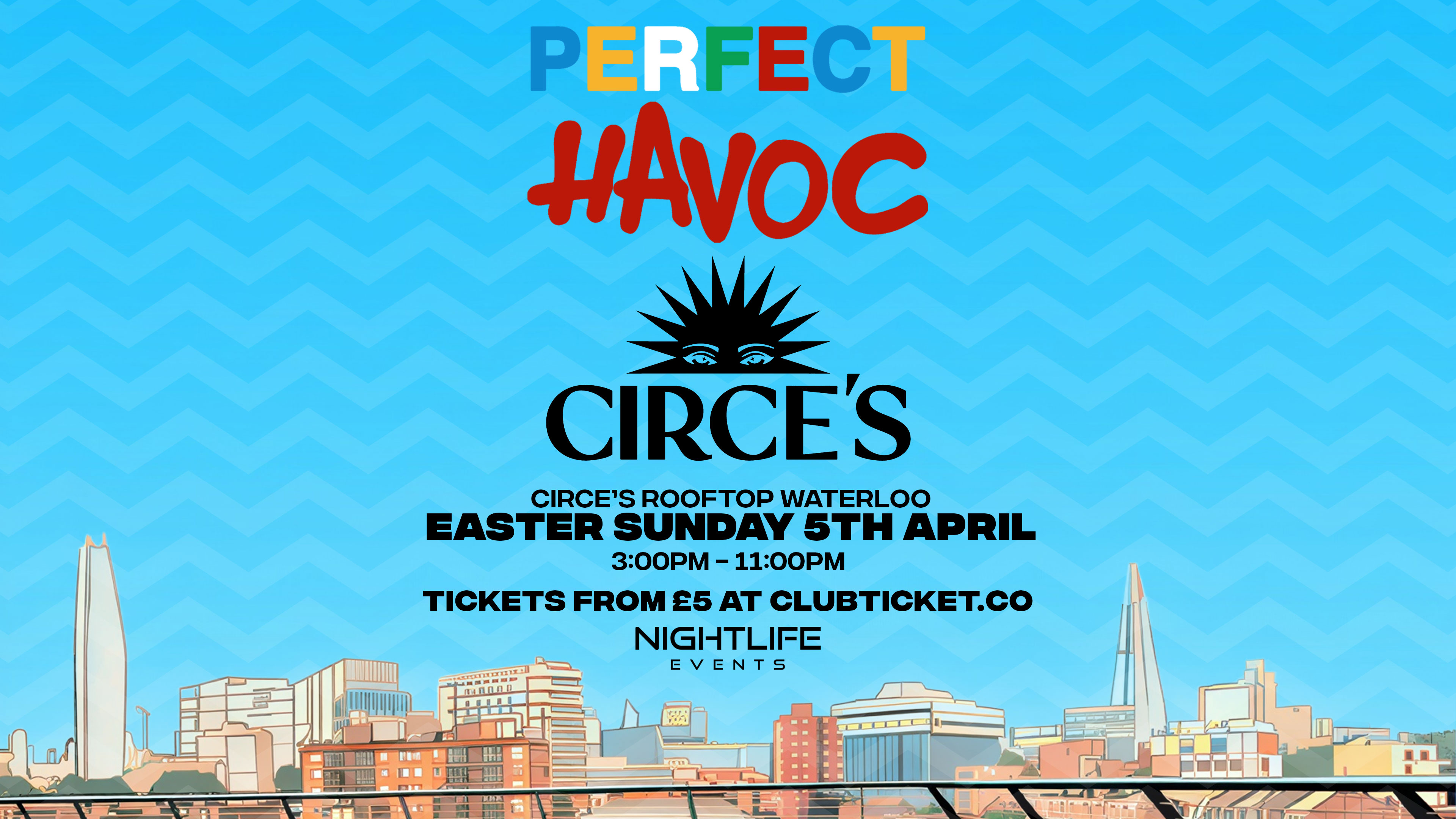 Celebrate Easter Sunday in style at Circe’s Rooftop Waterloo as Perfect Havoc takes over one of London’s most iconic skyline spots for an all day rooftop party like no other.