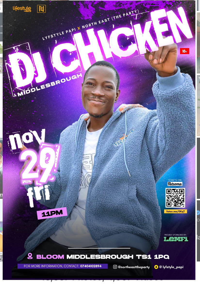 Moro dance crooner and one of the top Nigerian Tiktoker ‘Dj Chicken’ will be live in Middlesbrough. It’s going to be a very lovely and fun filled night… don’t be told, be there!!!