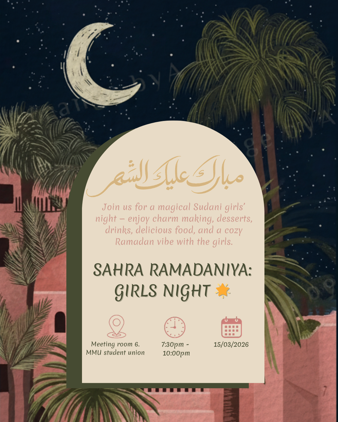 Bring your friends, dress cute, and get ready for a fun, girly Sudani night filled with good vibes, creativity, and Ramadan spirit. We can’t wait to see you there! 🌙✨💗