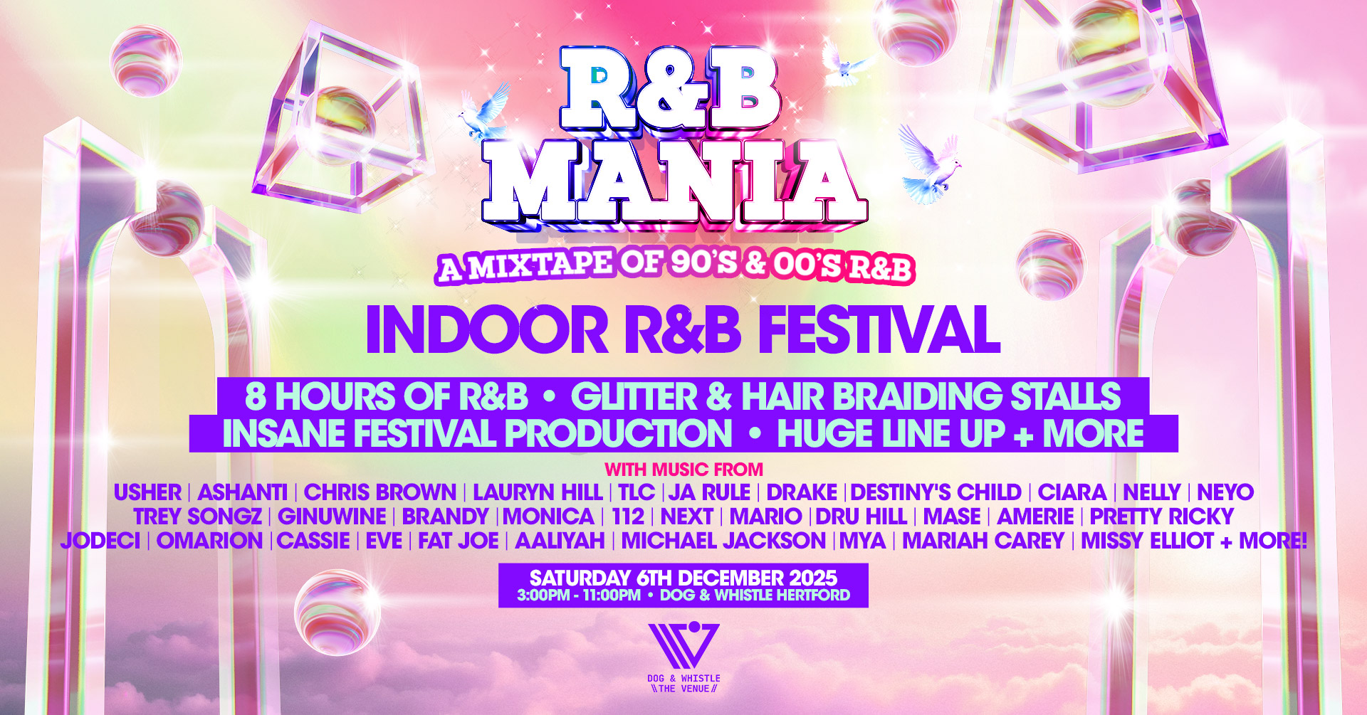 RNB MANIA returns to Dog and Whistle in Hertford on Saturday 6th December an insane 8-hour indoor festival! 👀