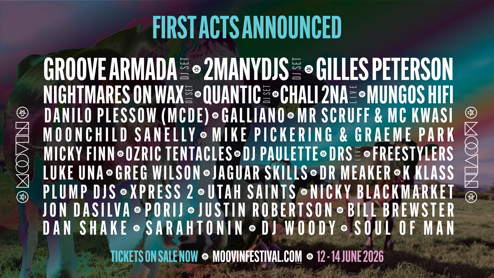 Big names, booming basslines, boutique festival in a bull field...it can only mean one thing... Moovin Festival is back and promises to get you dancing to a music lover's mix of bass, funk, soul, reggae, house and d&b until the cows come home.