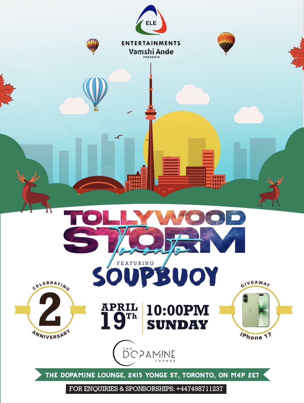 TOLLYWOOD STORM – Toronto ELE is celebrating its 2nd Anniversary, and we’re going BIGGER than ever! 🎉🔥