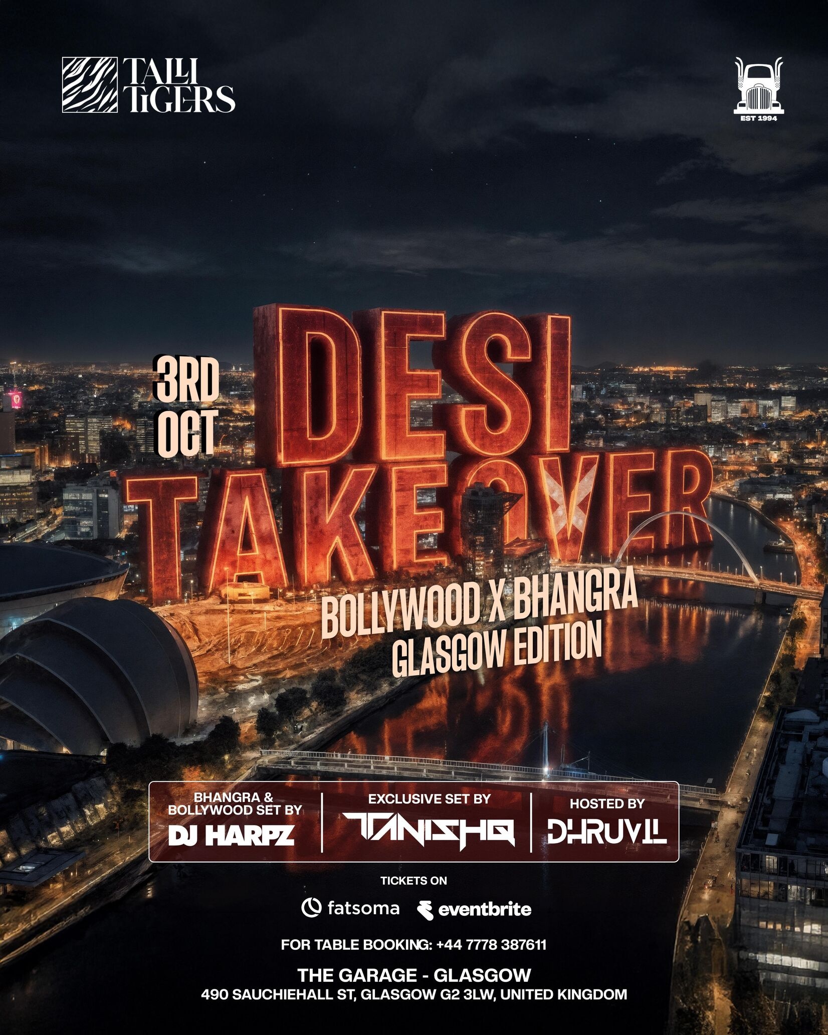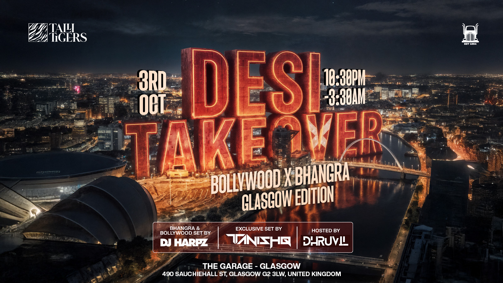 London’s Talli Tigers are storming into The Garage, Glasgow – Friday 3rd October for the biggest Desi party of the year.