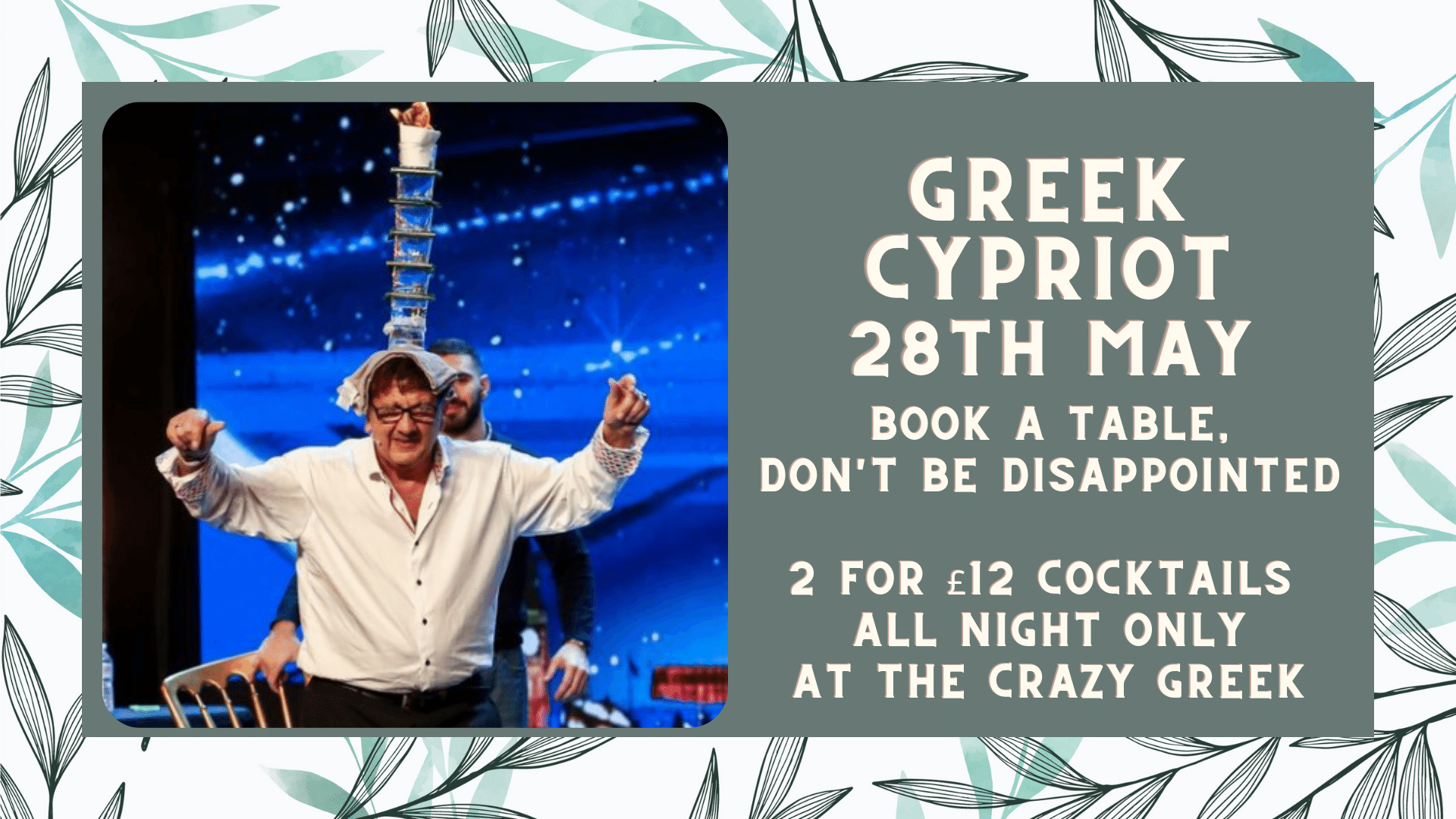 Make sure you book your table so you don’t miss out! www.thecrazygreek.co.uk