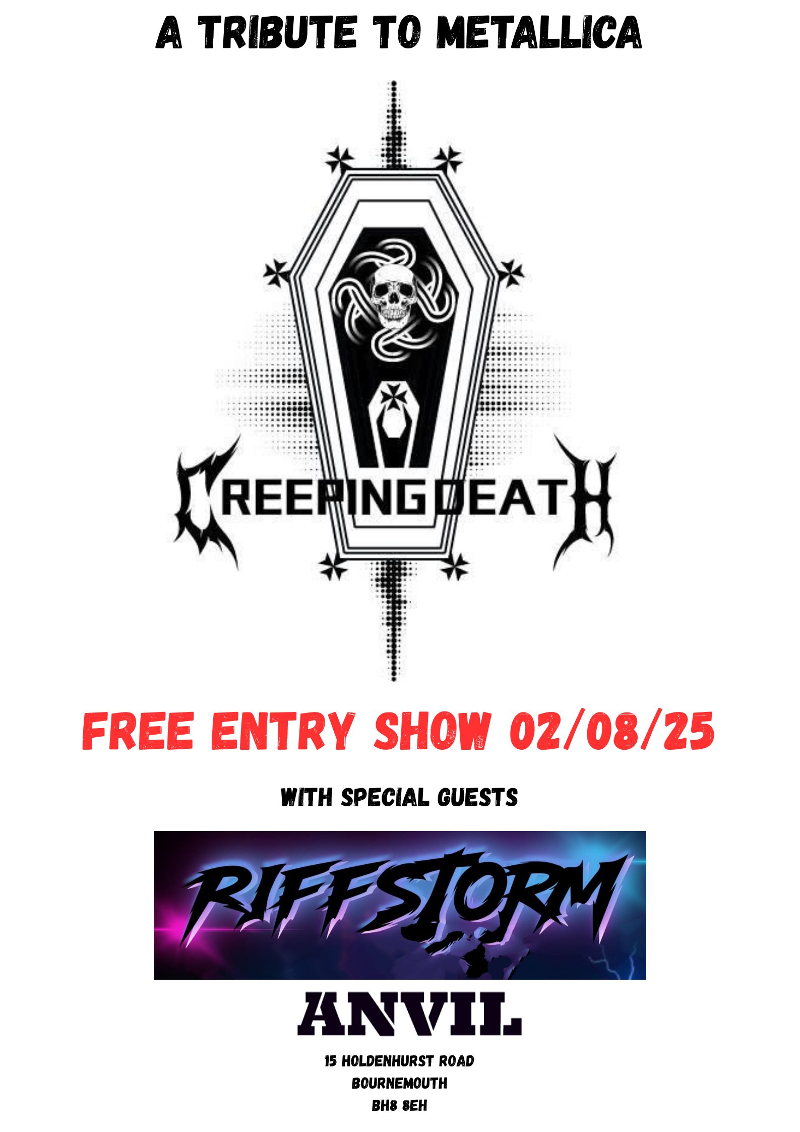 Creeping Death play a free show at Anvil with Supersonic sloth saturday 2nd of August