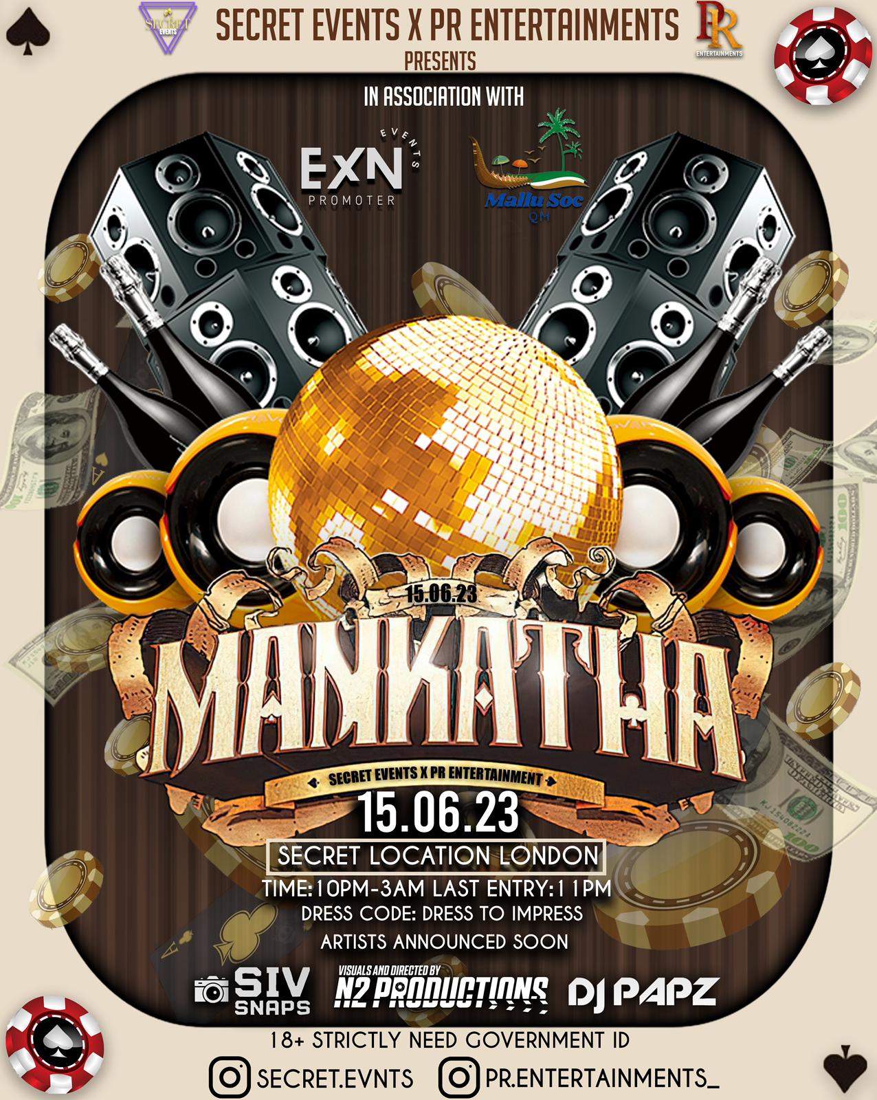 Secret Events x PR Entertainment Presents Mankatha🎰