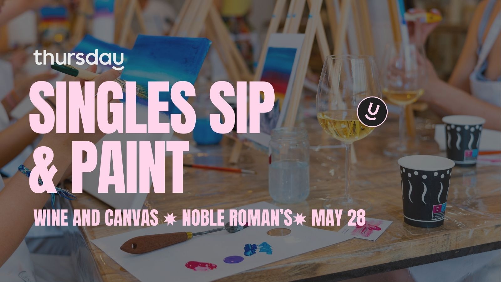Join us for a creative twist on singles night as Thursday Dating partners with Wine & Canvas at Noble Roman's Pizza & Pub for an evening of painting, sipping, and mingling. Whether you're a Picasso-in-the-making or just here for the wine, this event is all about relaxing, having fun, and meeting new people in a low-key, no-pressure setting.