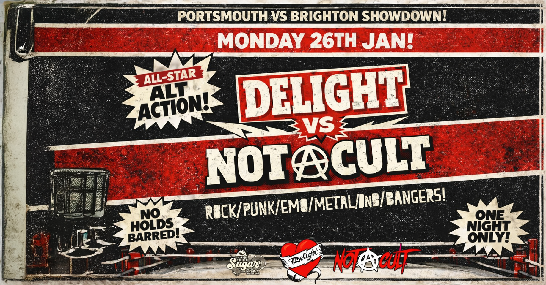 Brighton’s NOT A CULT rolls into town to go head-to-head with Delight for a full-throttle night of alternative carnage.
