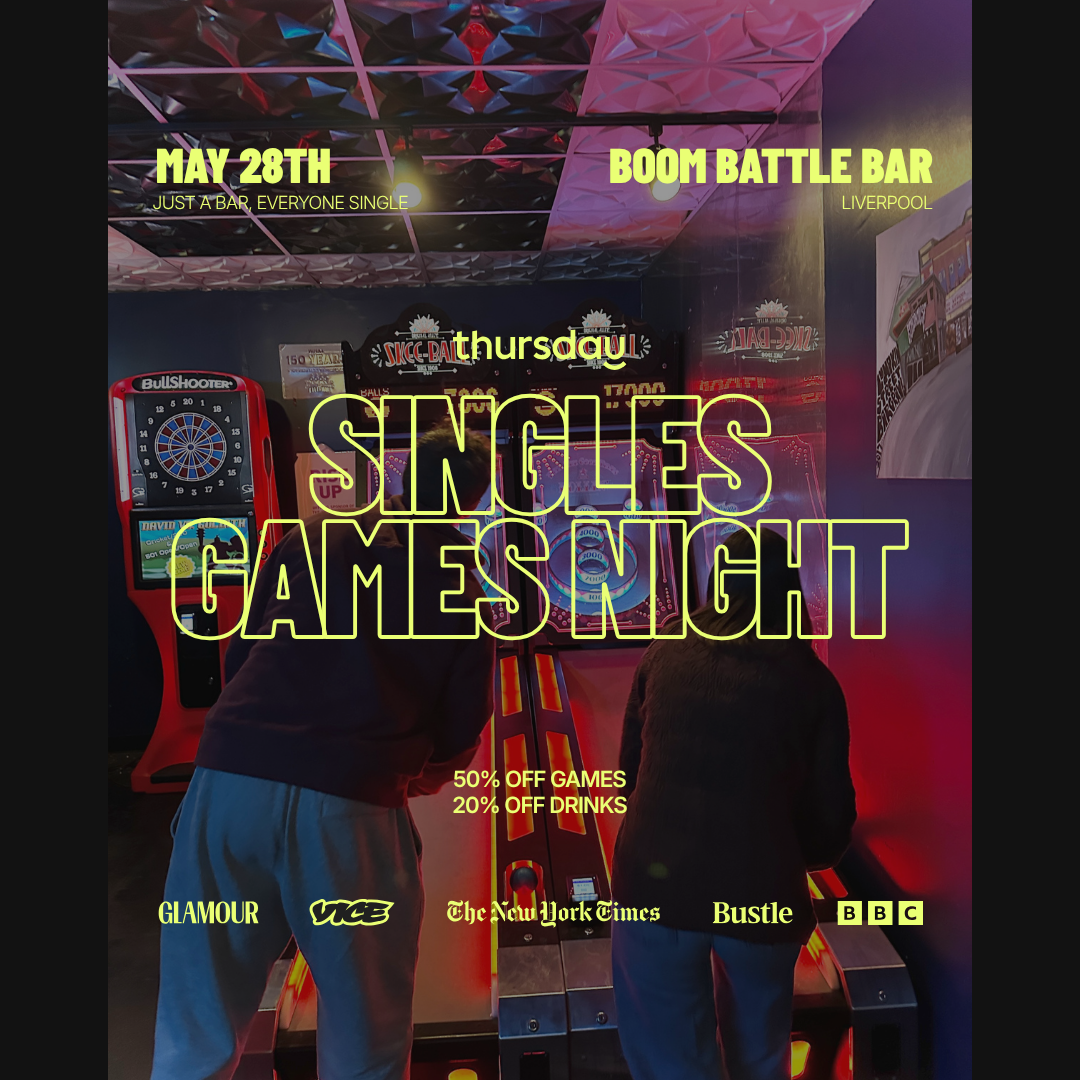 HELLO Liverpool ❤️🔥 It's Thursday. The UK's biggest in-person dating night is taking over Boom Battle Bar and we want YOU there.