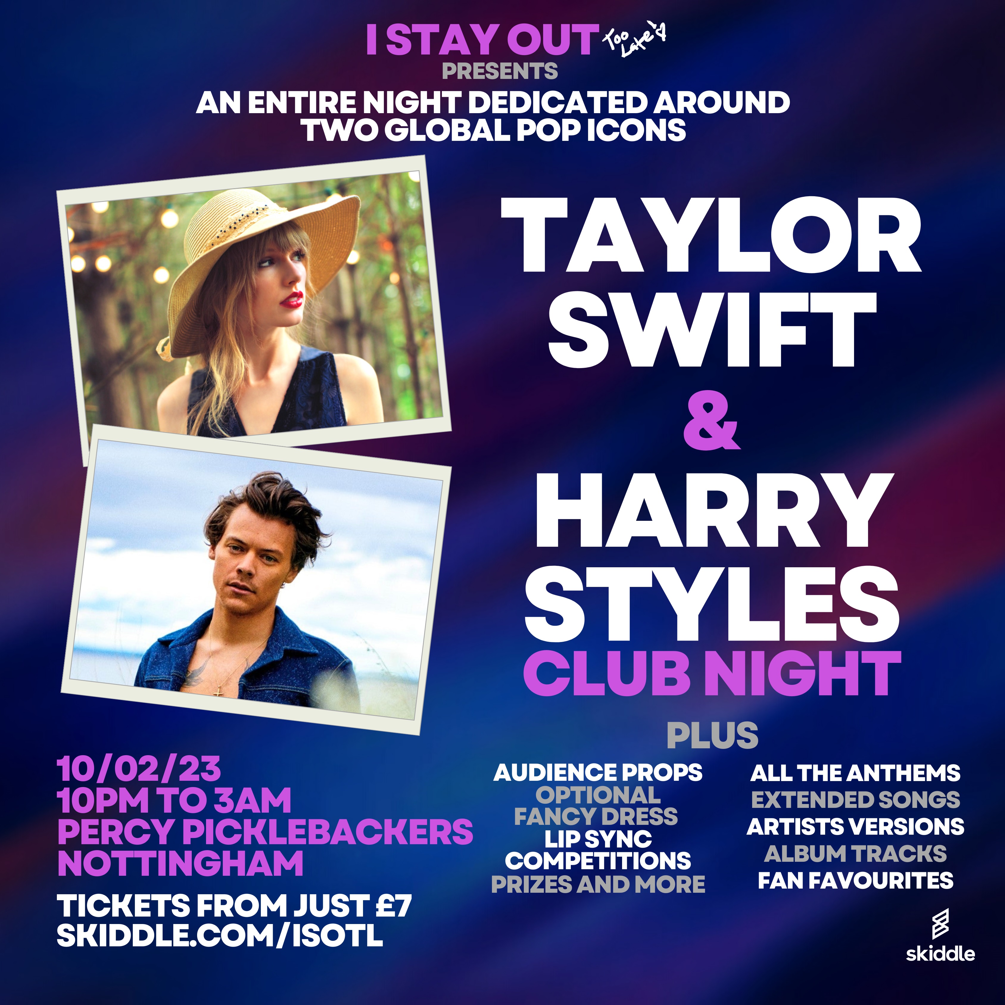 I STAY OUT TOO LATE presents the TAYLOR SWIFT Vs HARRY STYLES CLUB NIGHT you really don't want to miss! Are you ...Ready For It?