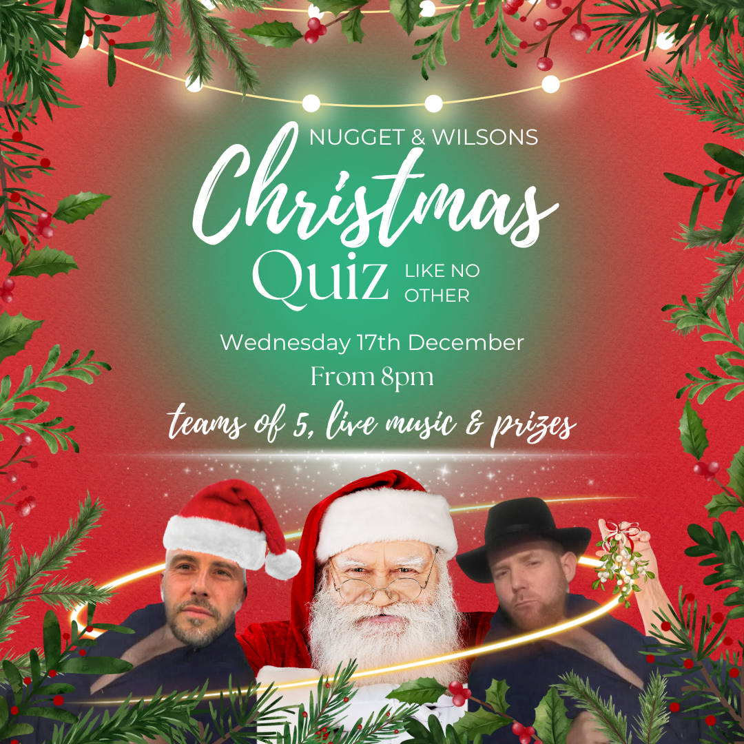 So here we are, giving you the chance to prove you’re the cleverest eggnog in the carton. Nothing says Christmas spirit like beating your mates at a quiz night, eh? We’re talking mulled wine flowing, tinsel everywhere – a bit of cheeky banter, some real brainteasers, and, uh, prizes so good they’ll make Santa reconsider his line of work. Plus, Nugget and Wilson. What more could you want? Christmas miracle, that.