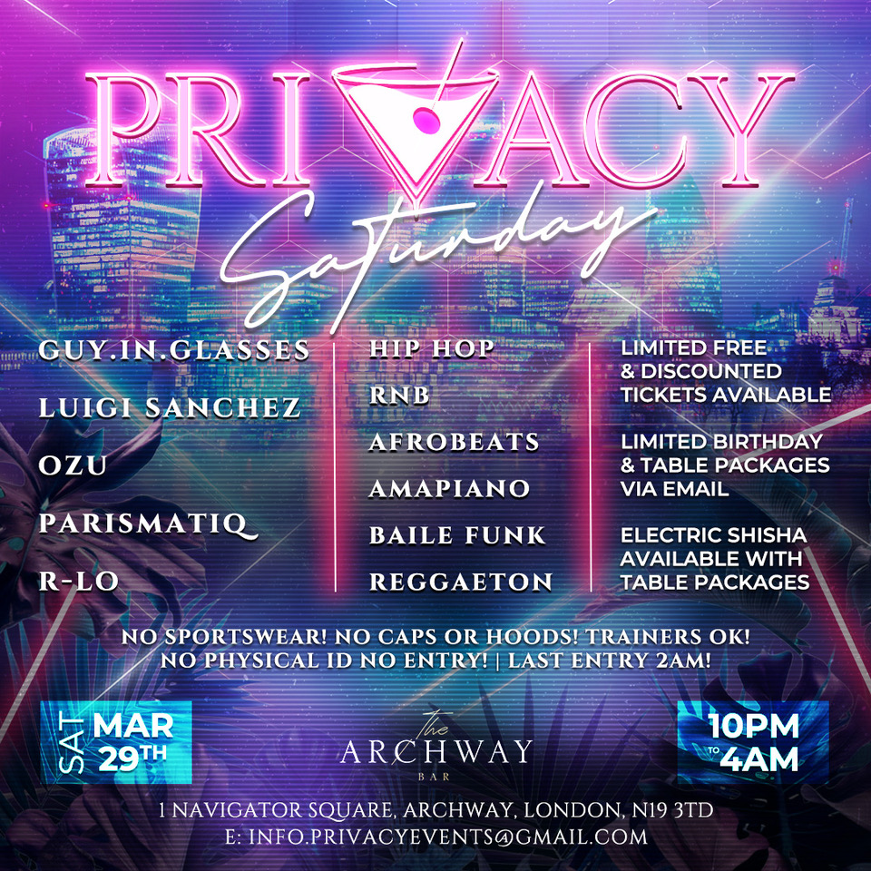 Join us on March 29th, 2025 for an exclusive club night that takes you on a journey of immersive sound, luxury, and energy. Privacy is where music and sophistication collide—crafted for those seeking an unforgettable experience in the heart of the city.
