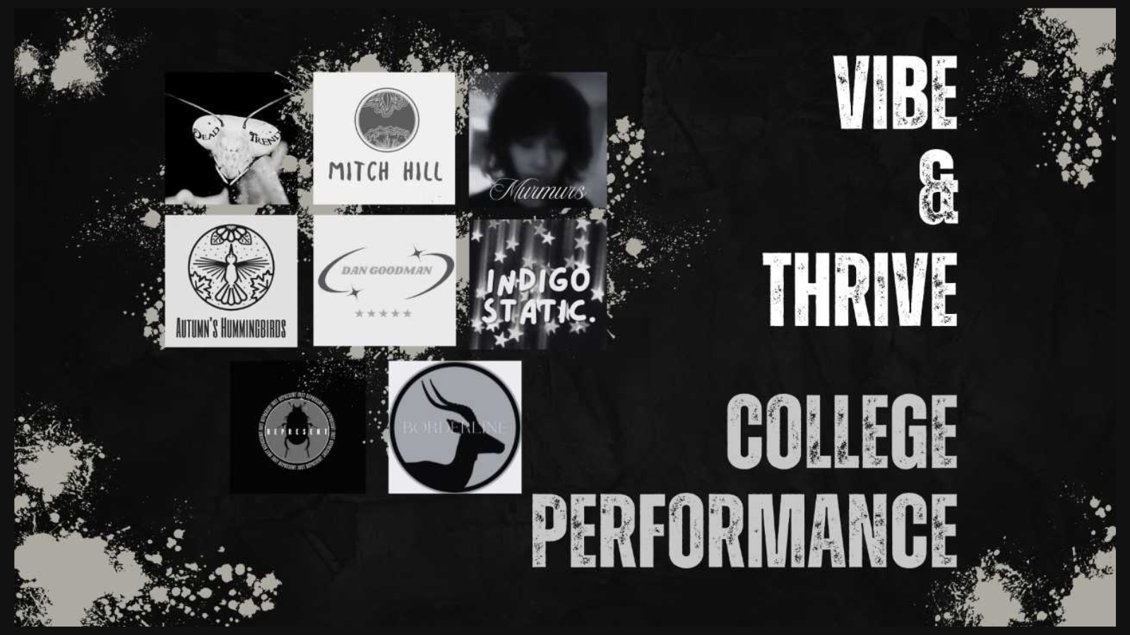 Get ready for an unforgettable night at Vibe & Thrive, the college gig where music, energy, and good vibes come together. Featuring a dynamic lineup including Represent, Autumn’s Hummingbird’s, Mitchell Hill, Dan Goodman, Deadtrend - plus even more acts, you can expect a night full of diverse music, high energy, and a crowd that's all about living in the moment. Whether you're here to discover new artists or just vibe with friends, this is the place to thrive.