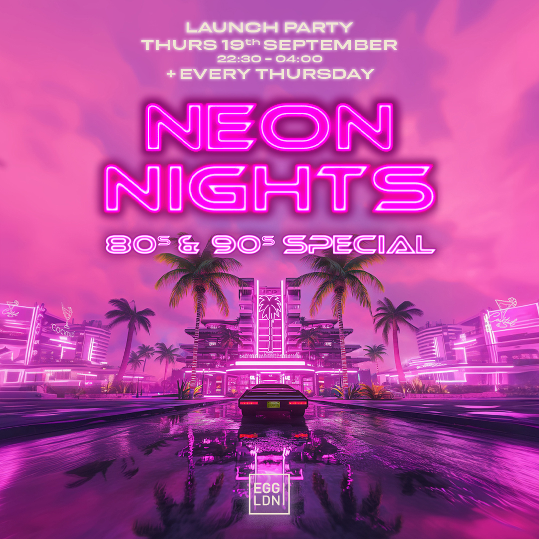 Get ready to relive the iconic culture of the 80s and 90s as we bring the biggest hits, vibrant energy, and unforgettable vibes of these legendary decades to life. Neon Nights will transport you back in time with the sounds of timeless 80s icons like Inner City, Alexander O'Neal, Chaka Khan, Soul II Soul, Michael Sembello, and Dolly Parton. Then, dive into the 90s revolution with Faithless, MK, Nightcrawlers, Vengaboys, Daft Punk, and so many more!