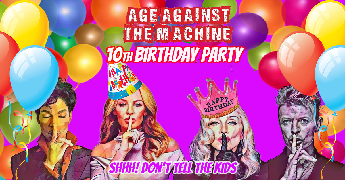Get ready for the grumpiest of all birthday parties as Age Against The Machine celebrates it's 10th Birthday!