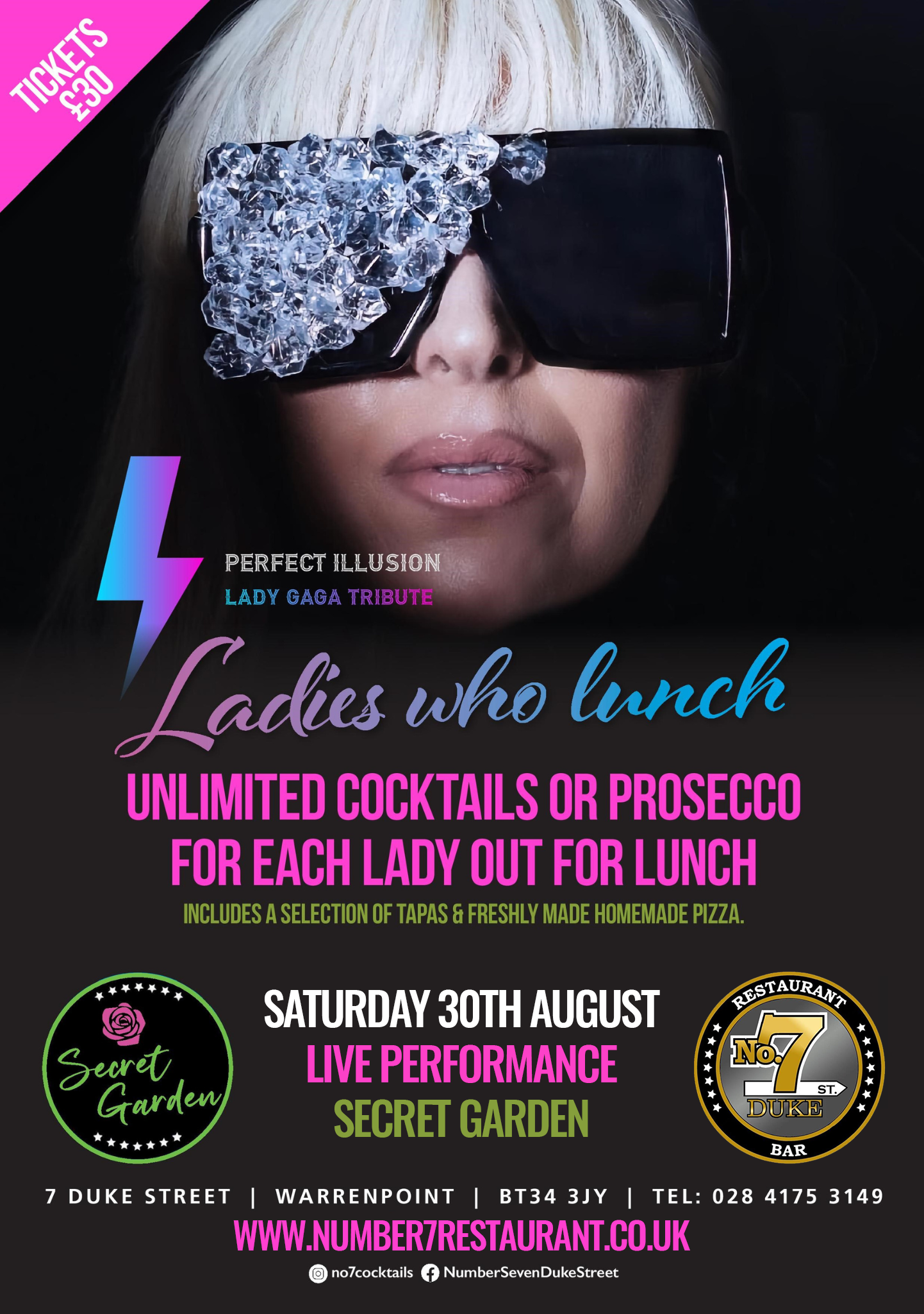 2 Hours Unlimited Cocktails or Prosecco with the amazing Perfect Illusion, Lady Gaga tribute performing her biggest hits