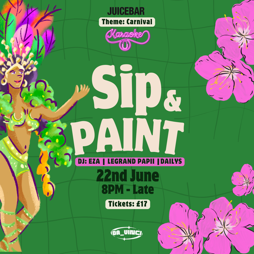 Da Vinci Club can't wait to welcome you to our next Sip & Paint event - CARNIVAL THEMED 🎉! This event will take place at Juicebar, Nottingham on the 22nd June 2024, from 8PM-LATE.