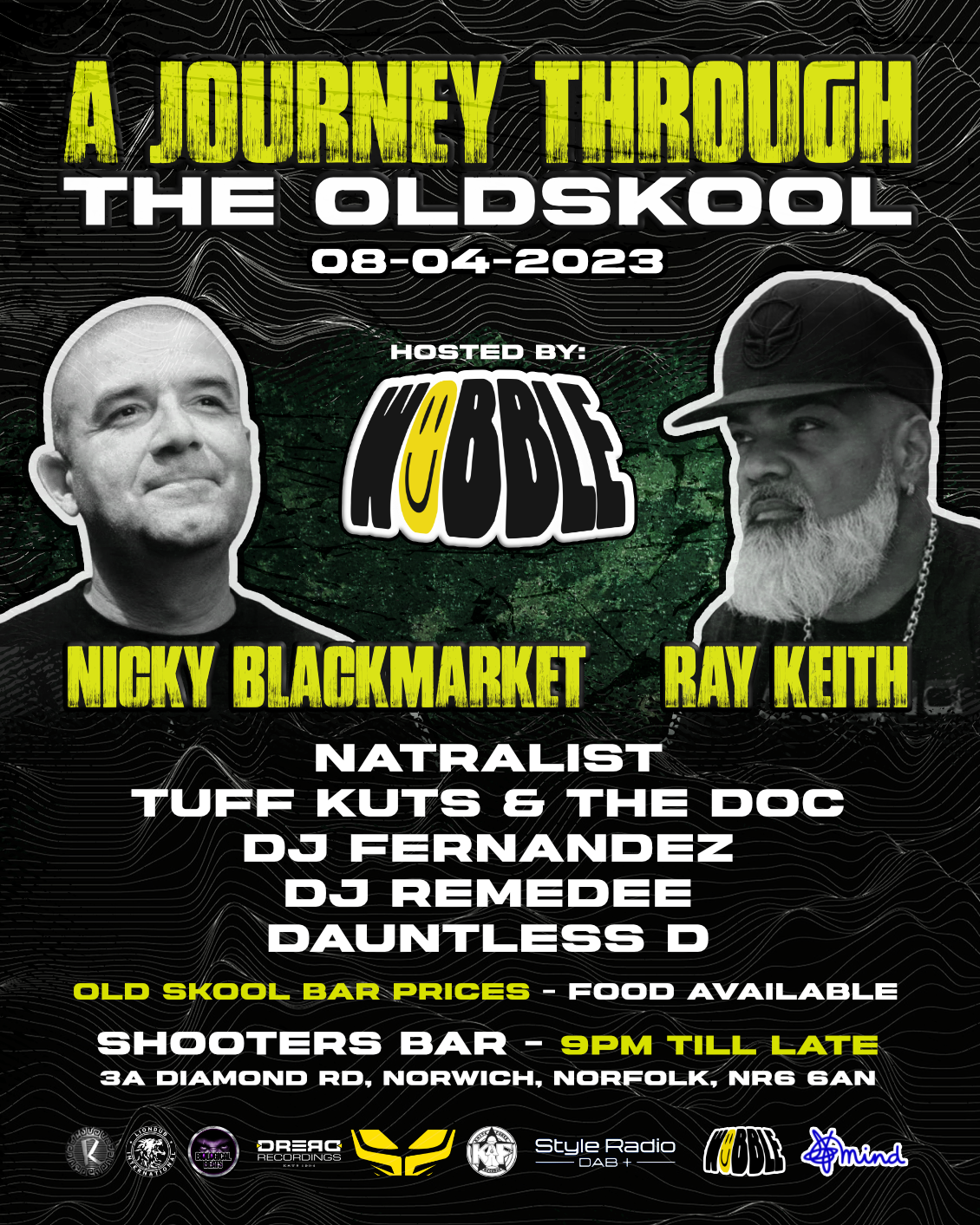 Wobble and 131 promotions presents a trailblazing night on April 8th 2023 in Norwich, celebrating Old school jungle and dance from 1991-94 with legends Nicky Blackmarket and Ray Keith headlining, we also have a brilliant lineup of local djs, plus up and coming stars. This is a limited ticket event so grab your tickets now before they sell out, there will be very limited tickets on the door at full price on the night.