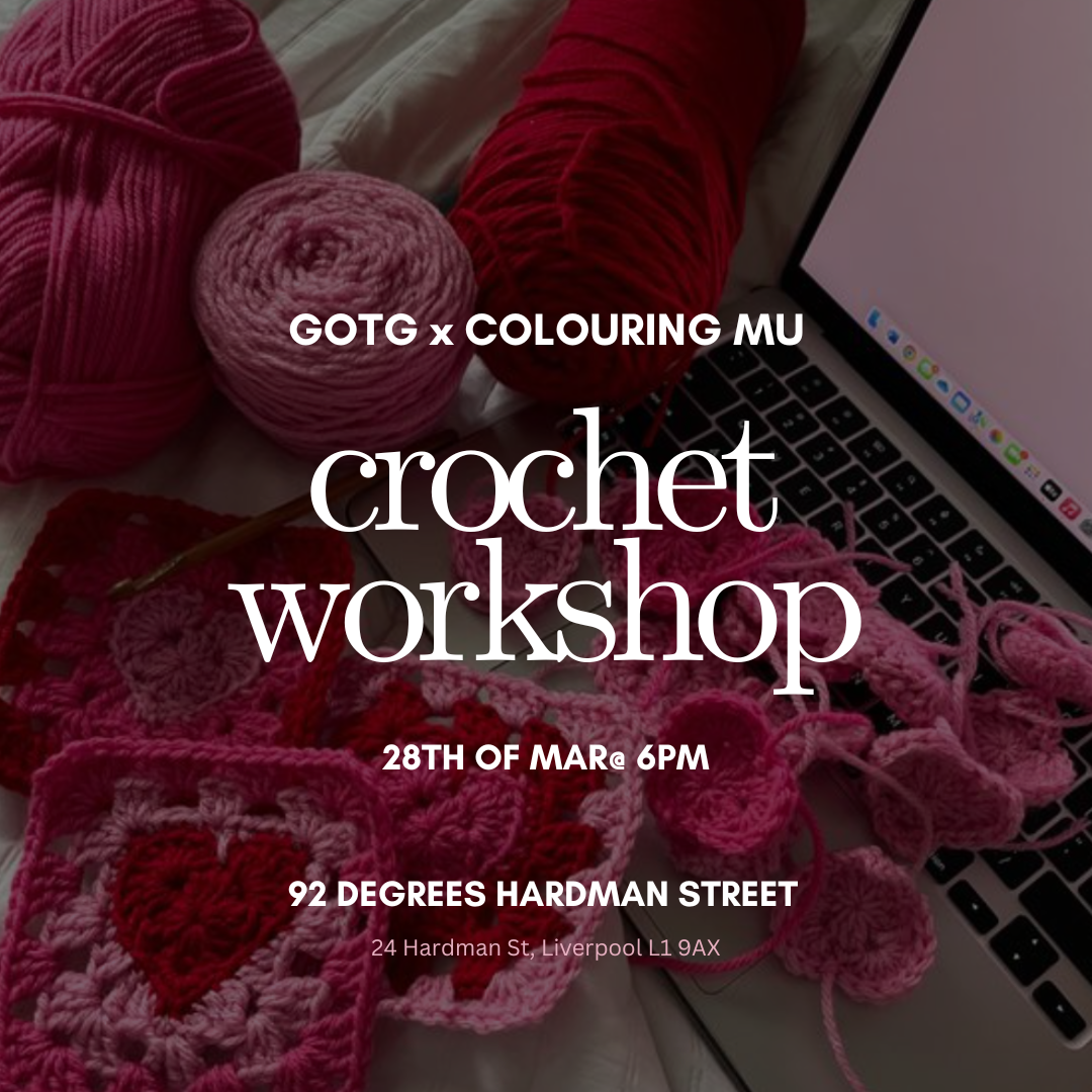 This is a 2 hour crochet workshop where we will walk you through how to make a granny square & teach you girls key stitches with the aim of doing more complicated crocheting in the future