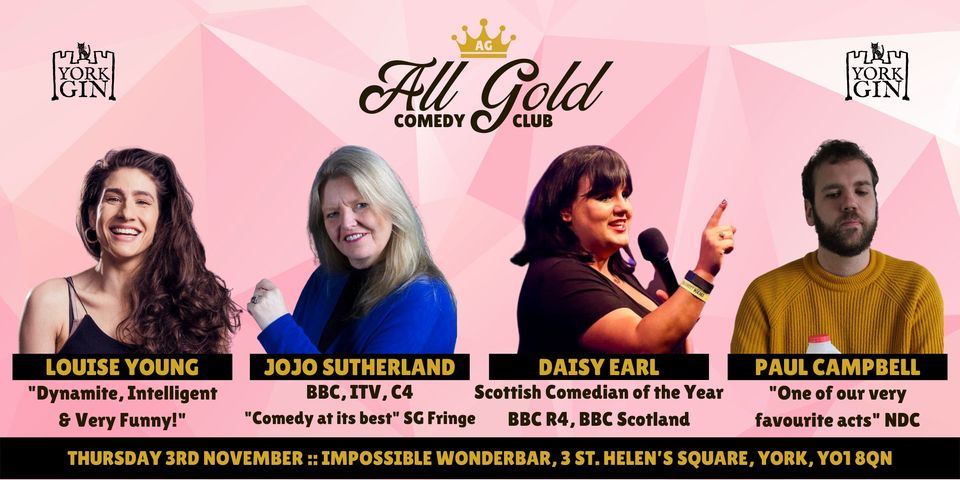 Join us at Impossible York with York Gin for another stunning night of stand up....Resident MC Louise Young introduces...JoJo Sutherland