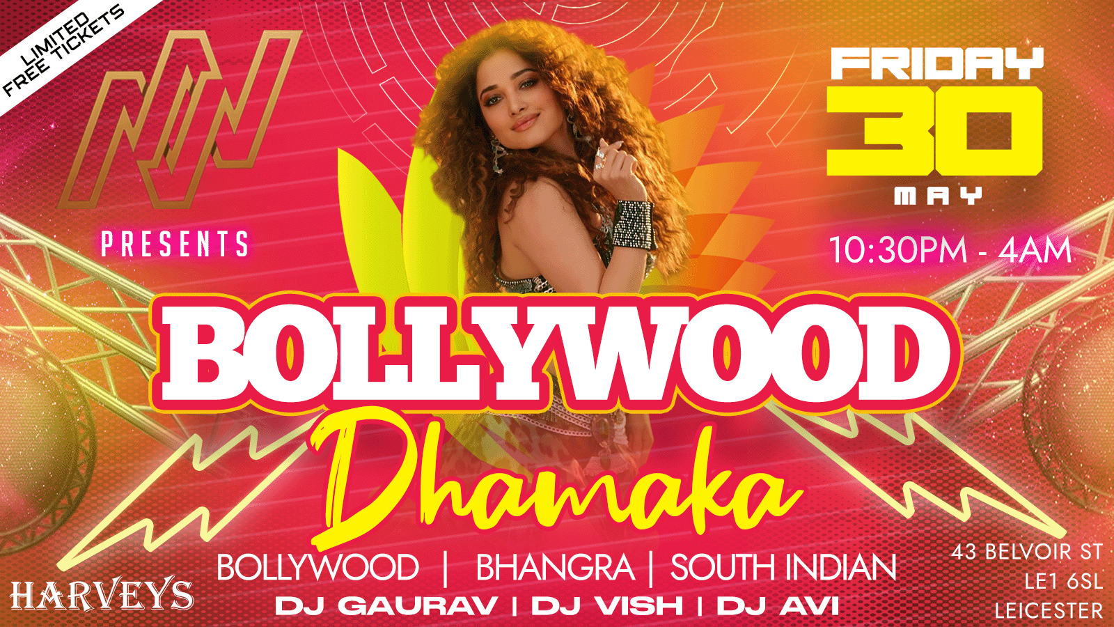 Leicester, the Desi madness is still raging – and this Friday, it’s only getting louder! BOLLYWOOD DHAMAKA returns to Harvey’s with another explosive night of beats and basslines!