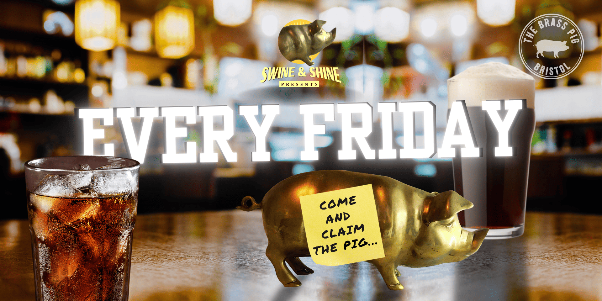 Get ready for the busiest party in town! Join us this Friday for SWINE AND SHINE for an unforgettable night. Expect good music, great drink deals and electric atmosphere. It's the only way to start the weekend!