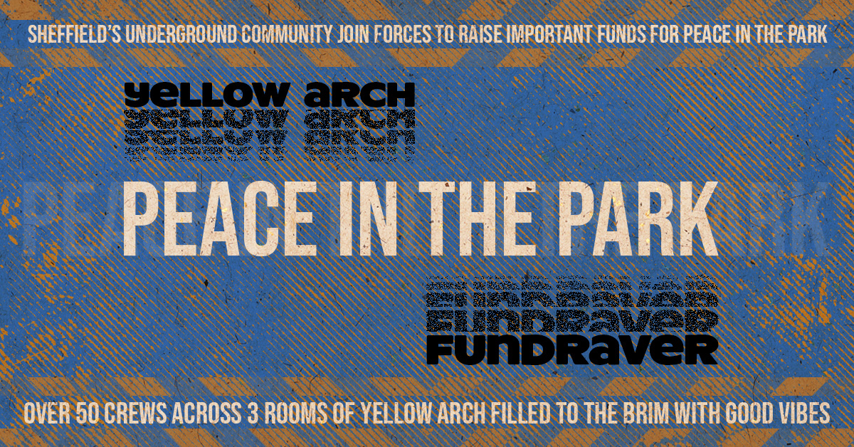 Sheffield's underground community join forces to raise important funds for Peace In The Park community festival, with over 50 crews across 3 rooms of Yellow Arch, filled to the brim with good vibes!