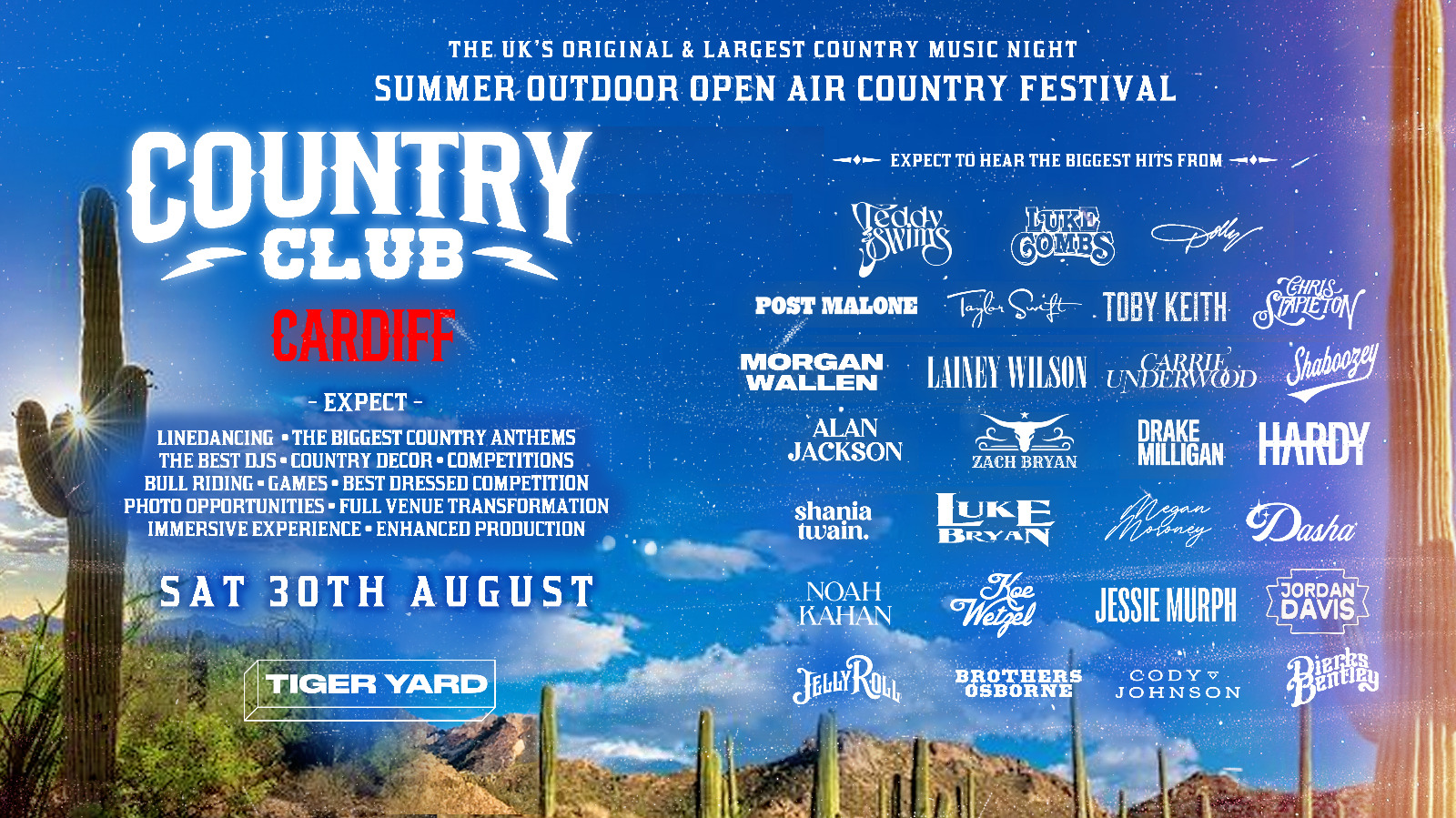 The UK’s first ever country music OUTDOOR OPEN AIR day party is riding into Cardiff for the ultimate hoedown in August 2025! Landing at the amazing Tiger Yard