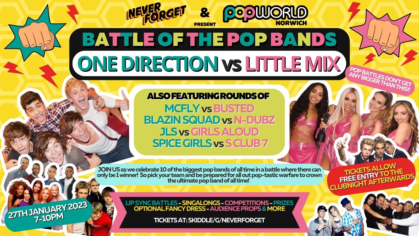 🎧 Our DJs will be playing the biggest party anthems and serving you up the biggest Pop Hits from the likes of One Direction, Little Mix, Mcfly, Busted, Blazin Squad, N-Dubz, JLS, Girls Aloud, Spice Girls, S Club 7 and much much more!!