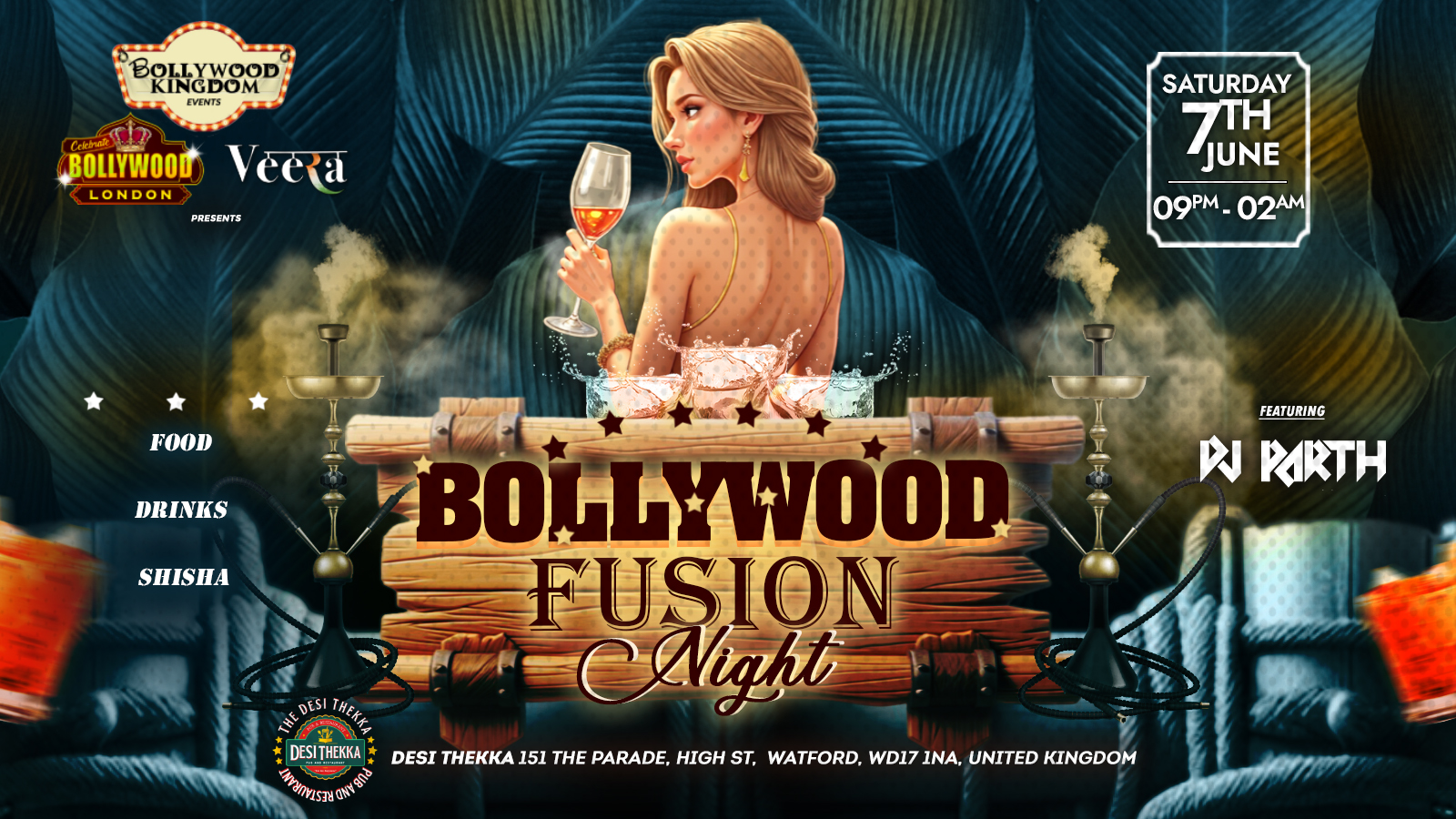 Join us on Saturday, 7th June at Desi Thekka Watford, for Bollywood Fusion Night, brought to you by Bollywood Kingdom Events & Bollywood London X Veera Group