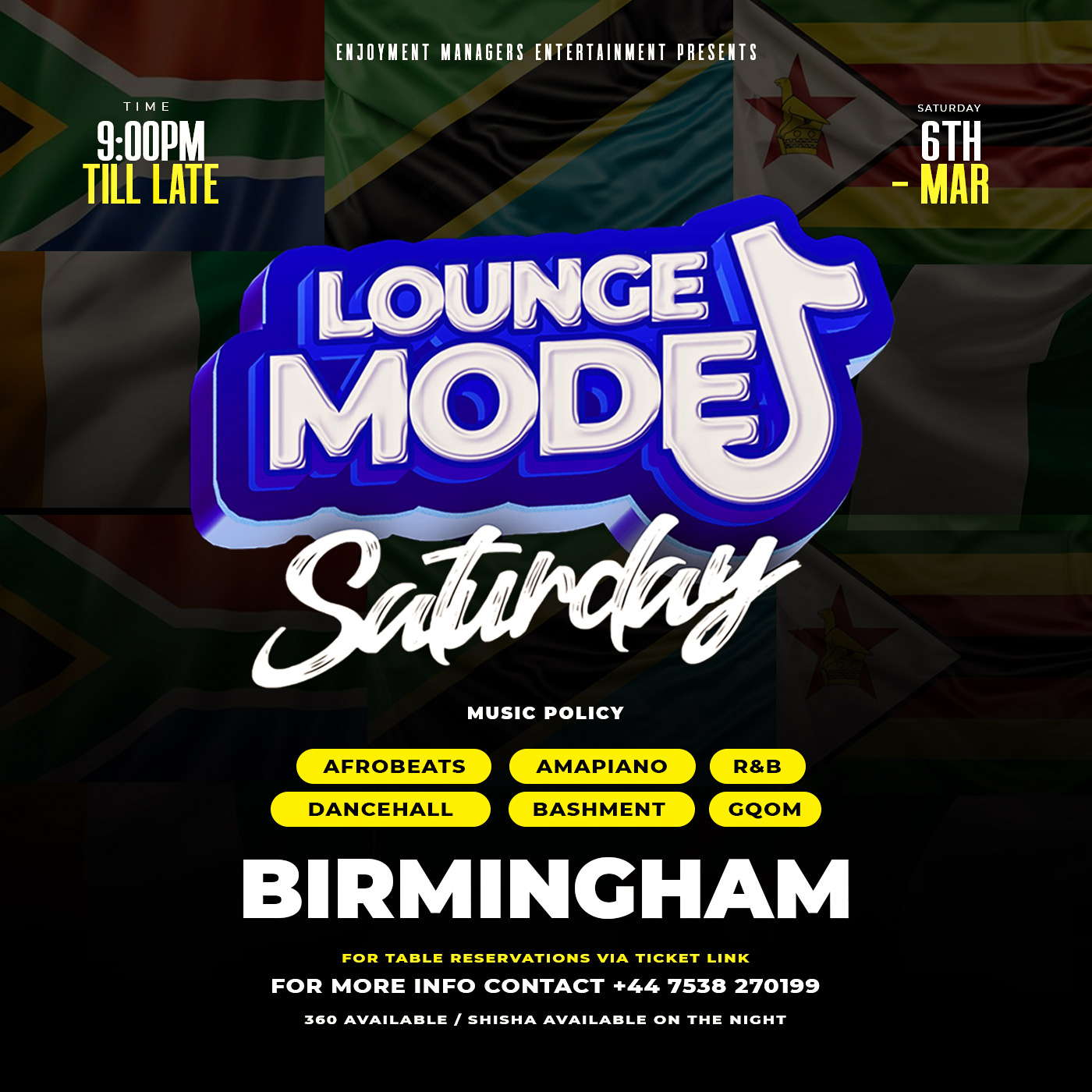 Come party with your fav Hosts and MC’s for entertainment - also includes your favourite DJs playing The Best of Afrobeats and International hits Amapiano, GRM Daily throwbacks, Zimdancehall, HipHop, Gqom, RnB and Bashment !