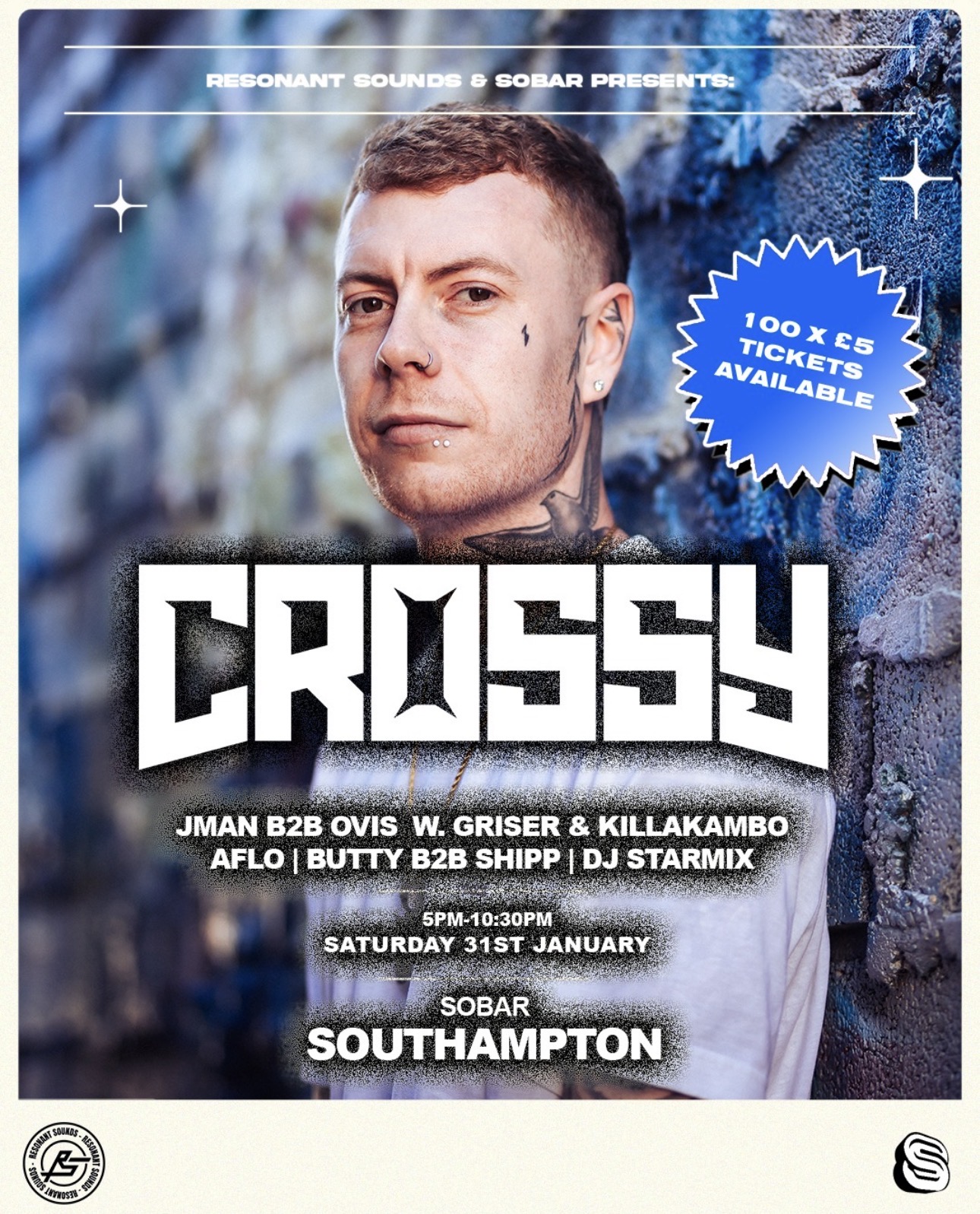 Don't miss Dnb star CROSSY at Sobar Southampton January 31st.