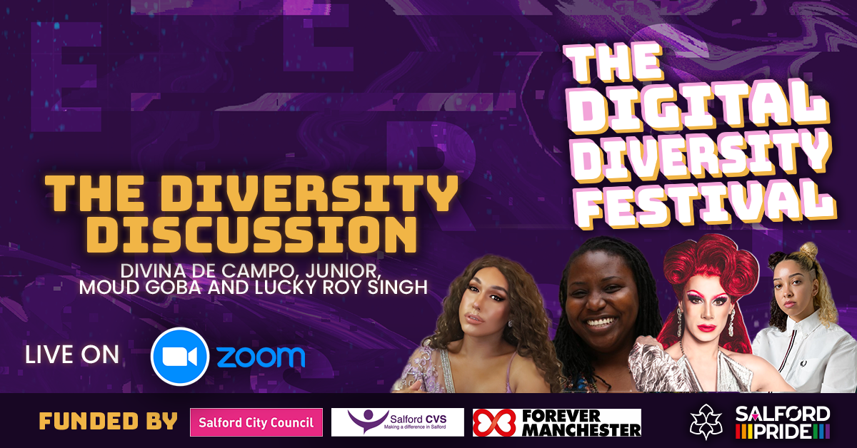 **The Digital Diversity Festival is raising funds for Salford Pride, and all charitable donations made through this site or any other site are non-refundable. When we receive your event donation, we believe it was your full intention to support our efforts and the work that Salford Pride does to build a stronger, diverse community that celebrates inclusion and equality; where LGBT+ people are represented, thrive and live authentically in our city and beyond. Because the Salford Pride put all donations to work quickly, we do not offer refunds on any donations or any donations made for events.