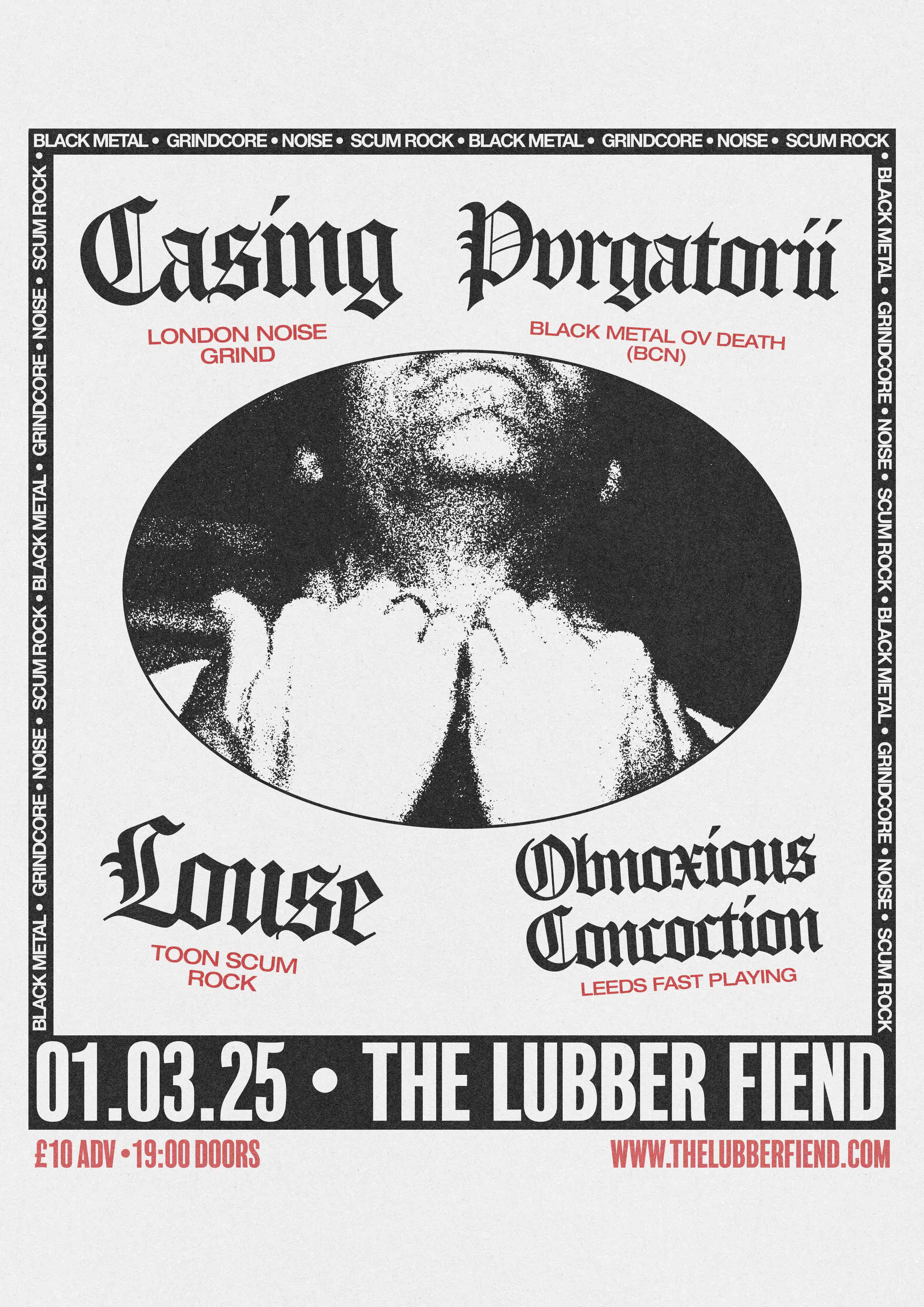 A full smorgasbord of sounds from Scum Rock to Black Metal, Grindcore and Noise. 4 bands, £10.