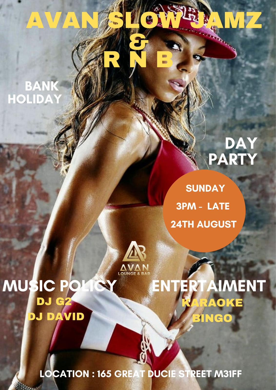 Avan Lounge presents Avan Slow Jamz & RnB Bank Holiday Day Party – your ultimate August Bank Holiday mood.