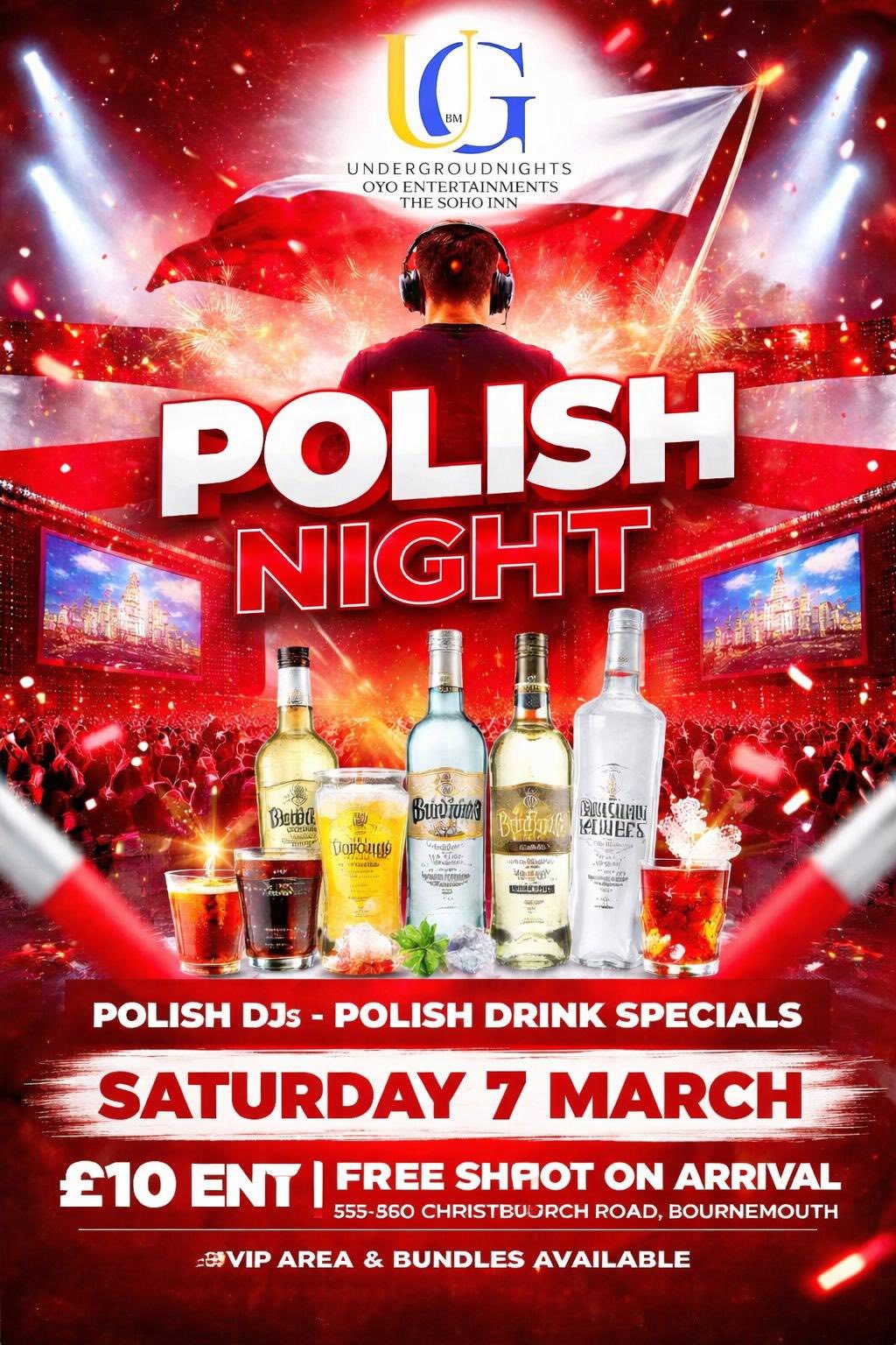 Get ready for the BIGGEST Polish Night in Bournemouth as Underground Nights brings you a high-energy night packed with Polish DJs, Polish drink specials, and non-stop party vibes 💃🕺