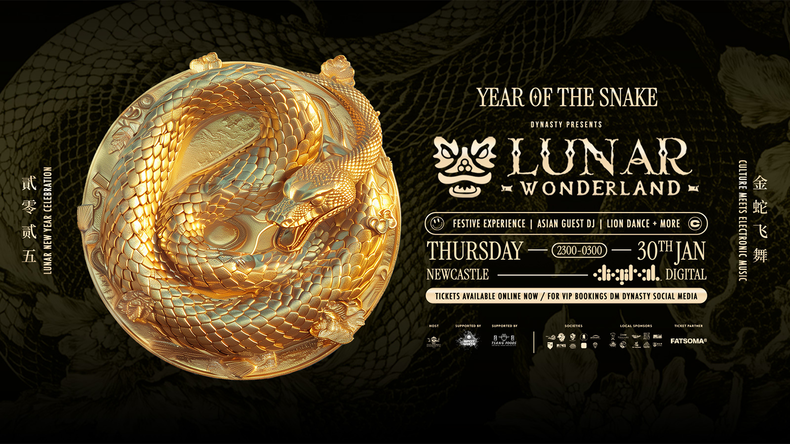 • DYNASTY CHINESE NEW YEAR PARTY 2025 • Come gather together and celebrate this SNAKE Year CNY with Dynasty Events - LUNAR WONDERLAND! Lunar Wonderland is bringing carefully curated experiences by transforming your favourite venues nationwide - THE SNAKE LANDS IN NEWCASTLE ON 30th JANUARY 2025!