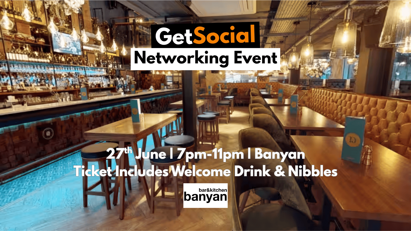 💳 Privilege Card Enjoy discounted drinks all night and beyond! This card gives you perks not just at this event but anytime after at any Banyan, Manahatta and Box venues across the UK! If it’s your first GetSocial event (launch night doesn’t count), you’ll receive your card on the night. After that just bring it along to future events at these venues to keep the good times (and drink deals) flowing! 🍻 (Important note: This card will only be issued to you once so please keep it safe, replacement cards may incur a charge!) 🙌