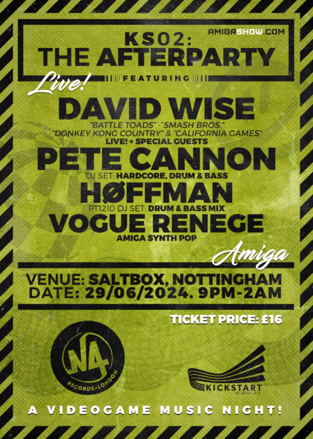 David Wise, renowned as one of the best videogame composers in the world, will be playing live with special guests. The rest of the night will feature Amiga performances, starting with Vouge Renege, followed by a PT1210 drum and bass set by demoscene legend H0ffman. Finally, the night will end with a high-energy rave featuring modern producer Pete Cannon, who incorporates retro tech into his productions.