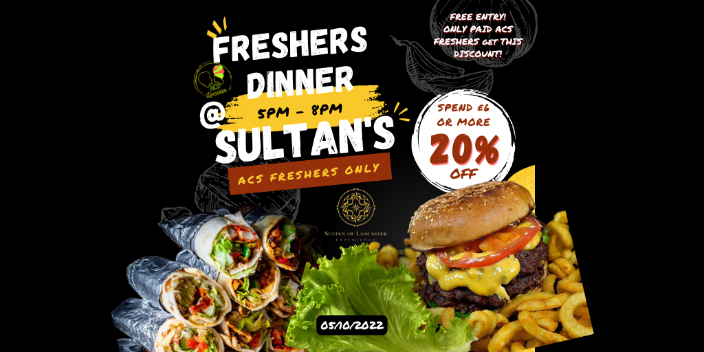 Lancaster ACS has organised a Freshers Dinner with one of our sponsors, Sultan of Lancaster Experience!